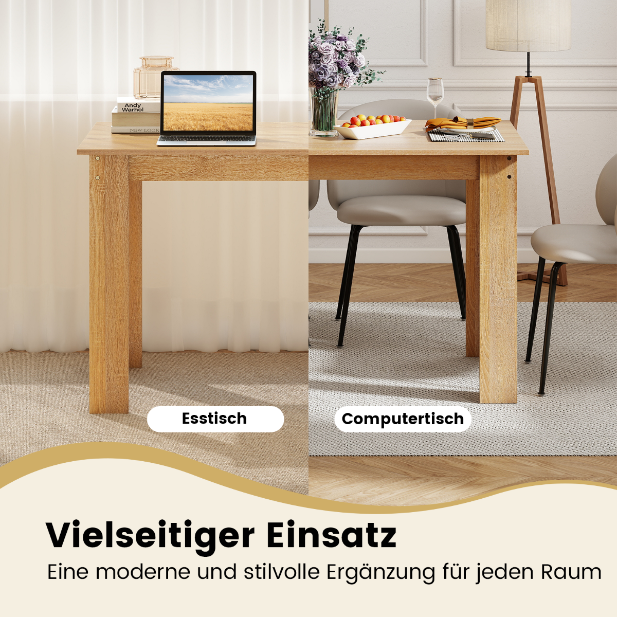 - Universalus naudojimas: Tinka ne tik kaip valgomojo stalas, bet ir kaip darbo stalas, rašomasis stalas ar rankdarbių stalas.