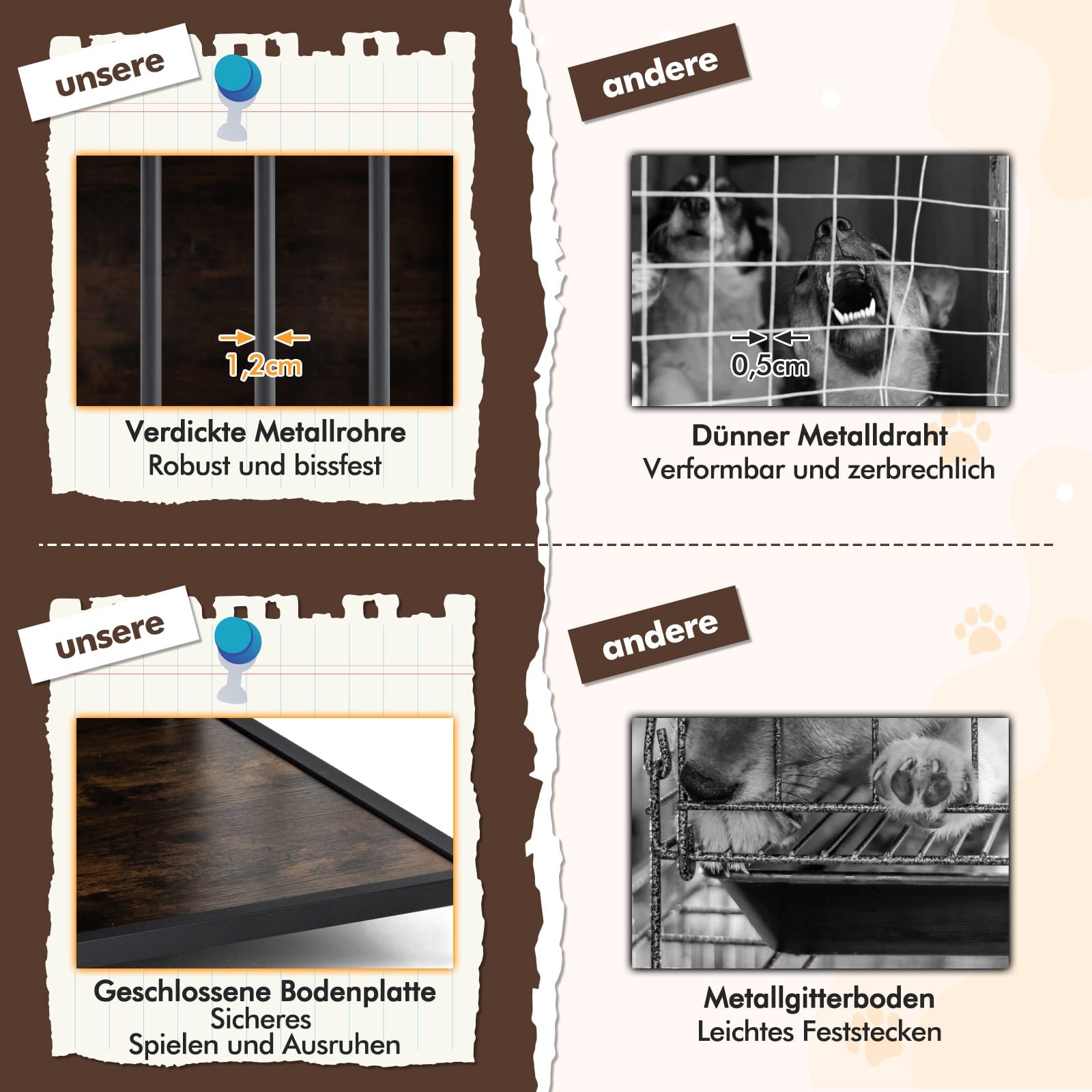 - Apgalvotos detalės: Viršus su specialia anga leidžia lengvai bendrauti su augintiniu ar jį maitinti, o reguliuojamos kojelės užtikrina stabilumą ant nelygių grindų.