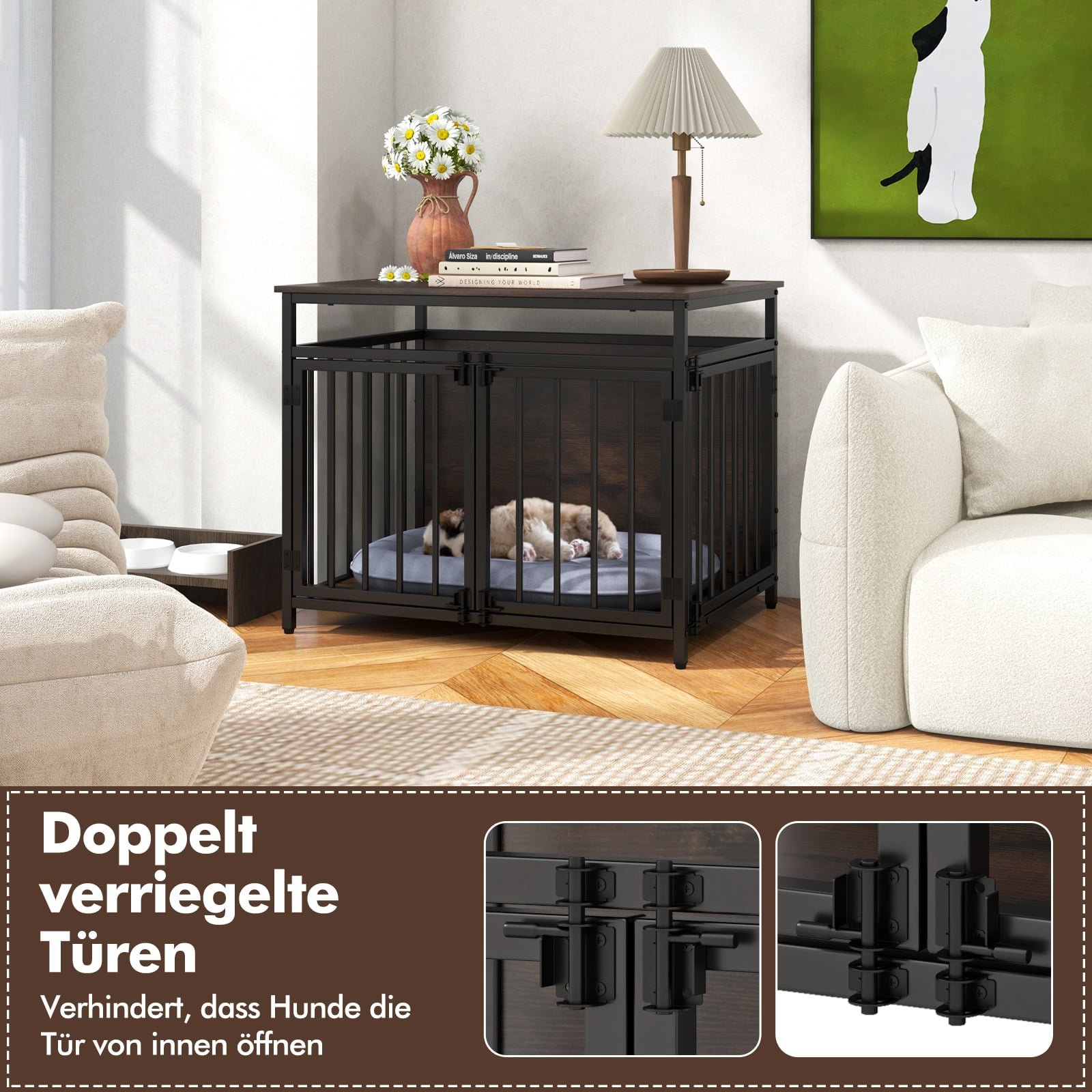 Sukurkite patogią ir saugią erdvę savo augintiniui su šiuo daugiafunkciu šunų narvu-baldu. Šis tvirtos konstrukcijos narvas, sukurtas atsižvelgiant į augintinio gerovę ir Jūsų patogumą, puikiai dera prie namų interjero kaip stilingas šoninis staliukas. Sustiprinti metaliniai vamzdžiai ir patikimai užrakinamos durys užtikrina saugumą ir ilgaamžiškumą.