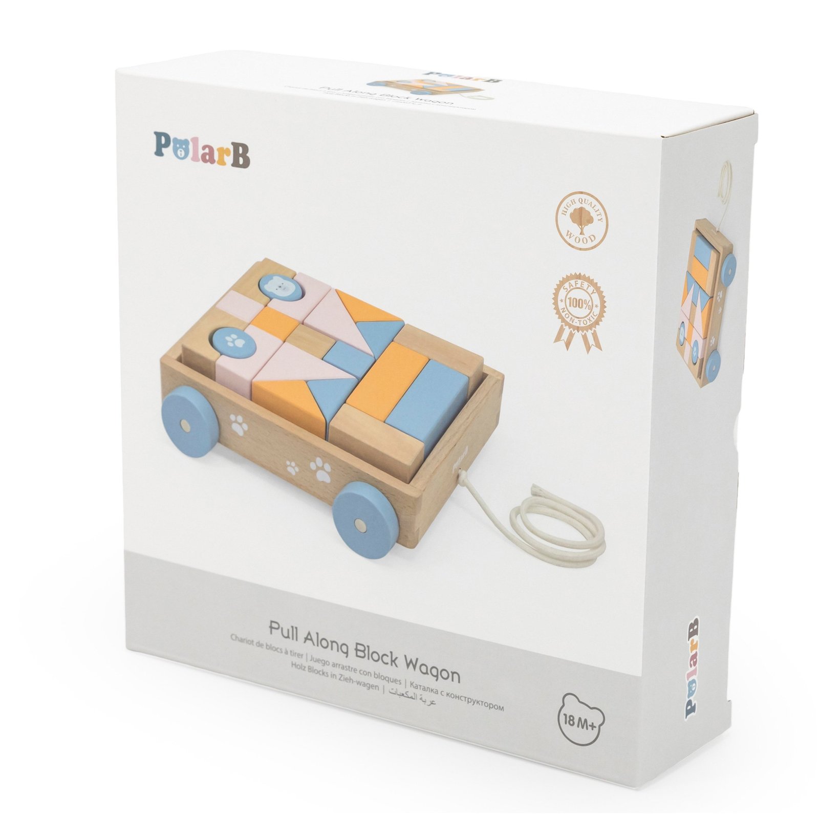 VIGA PolarB medinis traukiamas vežimėlis su kaladėlėmis – tai žaismingas pastelinių spalvų rinkinys, kuriame kaladėlės patogiai sudėtos vežimėlyje. Rinkinyje esančios 20 medinių kaladėlių įvairiomis formomis, spalvomis ir raštais leidžia konstruoti įvairius statinius. Žaidimas su šiomis medinėmis kaladėlėmis lavina vaikų motoriką ir kūrybiškumą. Kaladėlės pagamintos iš buko medienos, jos yra lakuotos, nudažytos derančiomis spalvomis ir visiškai saugios vaikams. Baigus žaisti, kaladėles galima patogiai sudėti atgal į vežimėlį, taip lengvai palaikant tvarką. Virvutė leidžia vaikui lengvai traukti vežimėlį su kaladėlėmis po kambarį.