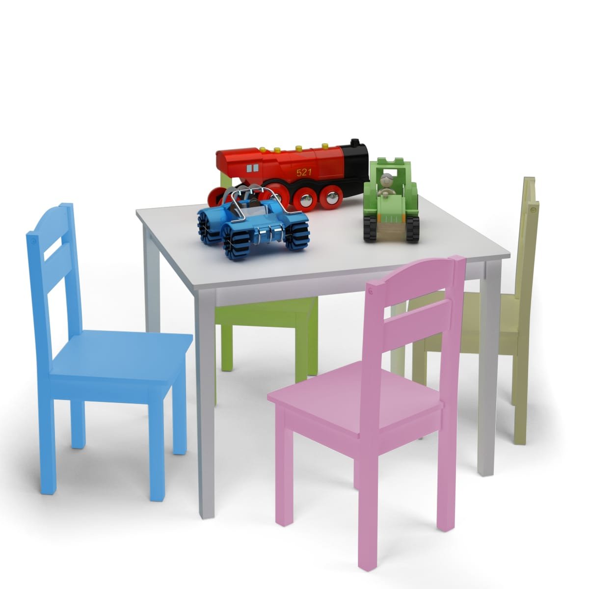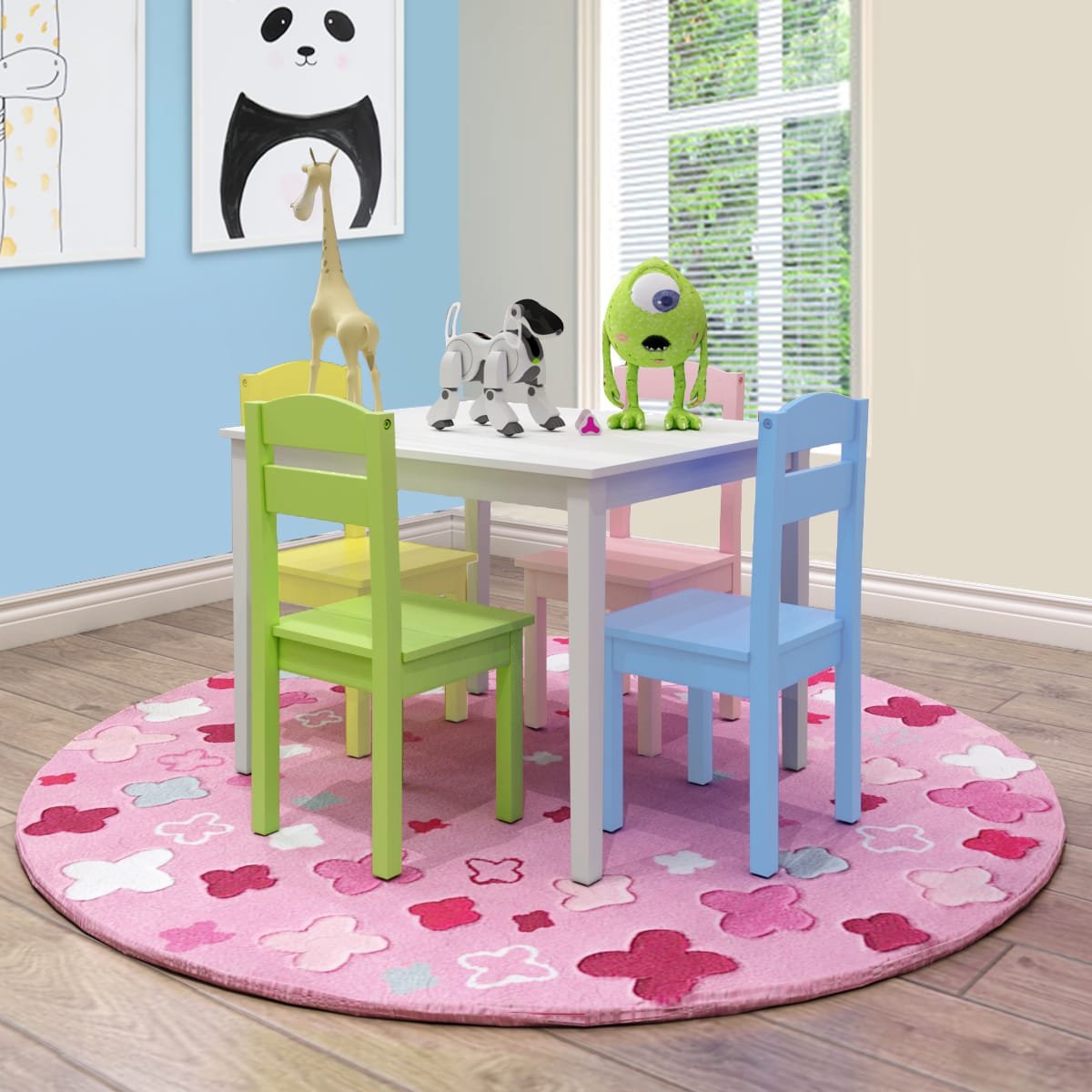 Medinis vaikiškas stalas ir keturios kėdės (Spalvota ir balta)