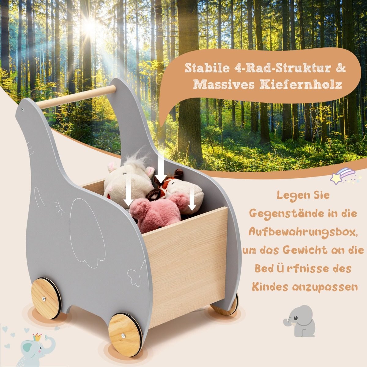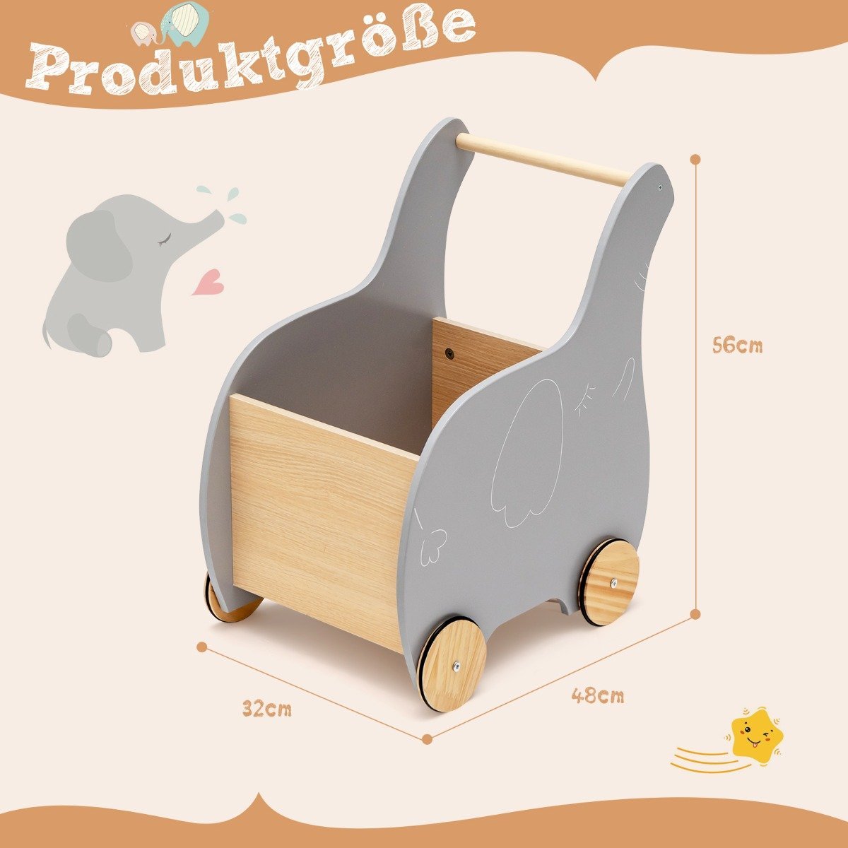 Medinis vaikiškas vežimėlis Drambliukas (Pilka)