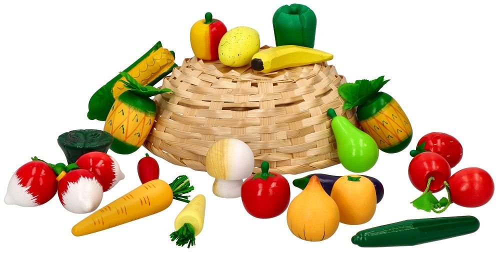 Medinis vaisių ir daržovių rinkinys krepšyje, 21 vnt.