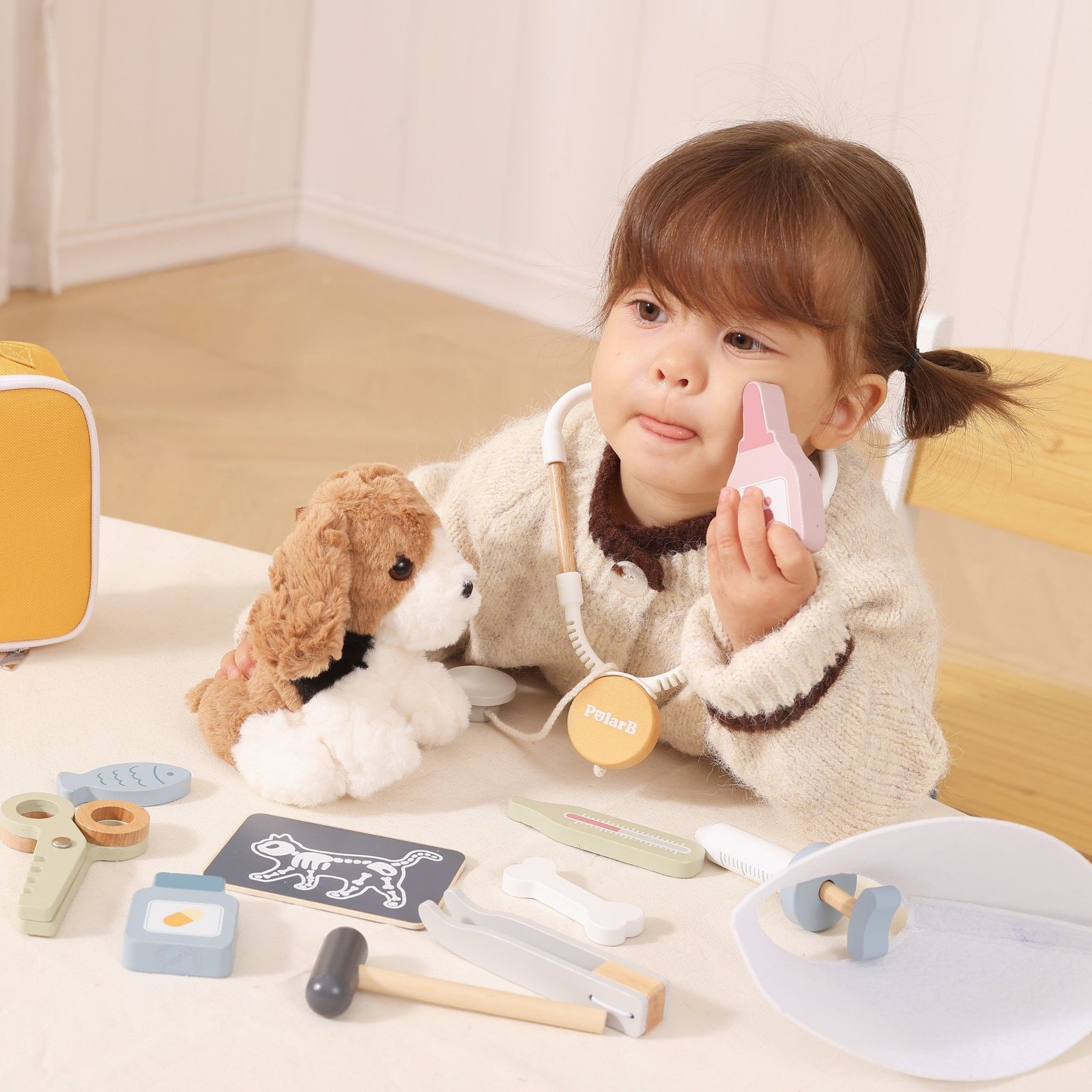 Su šiuo veterinarijos rinkiniu vaikas pasiners į tikros klinikos pasaulį, kuriame galės rūpintis savo pliušiniais augintiniais. 12 tikroviškų priedų padės kiekvienam mažajam gyvūnų mylėtojui pasijusti tikru profesionaliu veterinaru. Šis vaidmenų žaidimas lavina empatiją, atsakingumą ir moko rūpintis kitais.