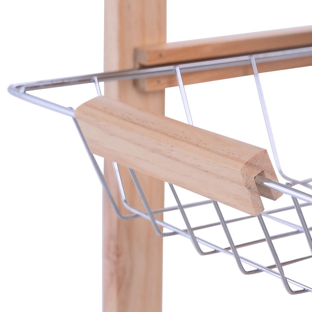 Medinis virtuvės vežimėlis su ratukais ir 3 lentynomis (Natūrali)