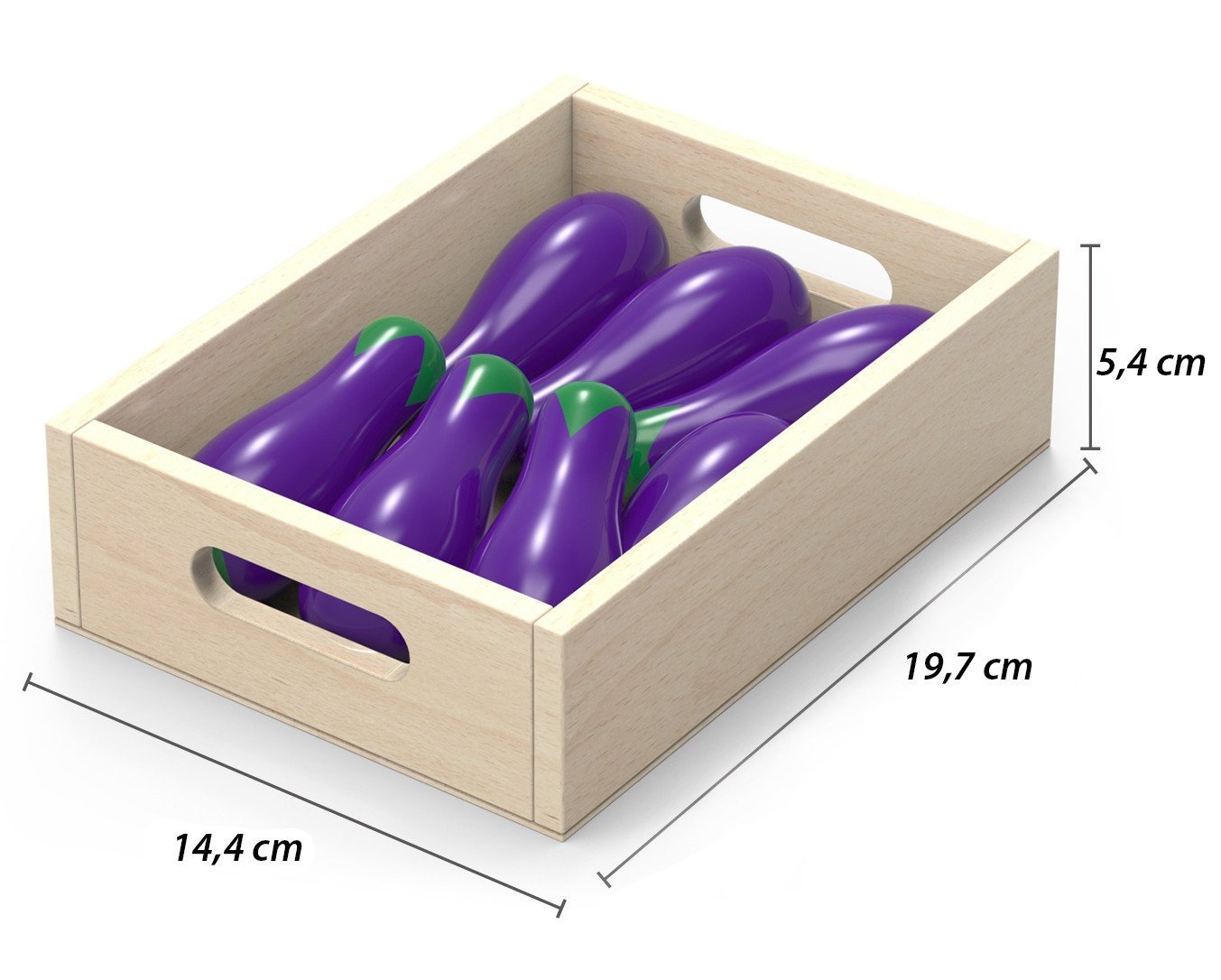 Šis „Viga” medinis vaisių ir daržovių rinkinys su dėžutėmis – puikus pasirinkimas jūsų vaikui. Kiekvienoje iš dešimties medinių dėžučių rasite po skirtingą vaisių ar daržovę: kriaušes, apelsinus, kivius, morkas, grybus, citrinas, obuolius, česnakus, baklažanus ir bananus.