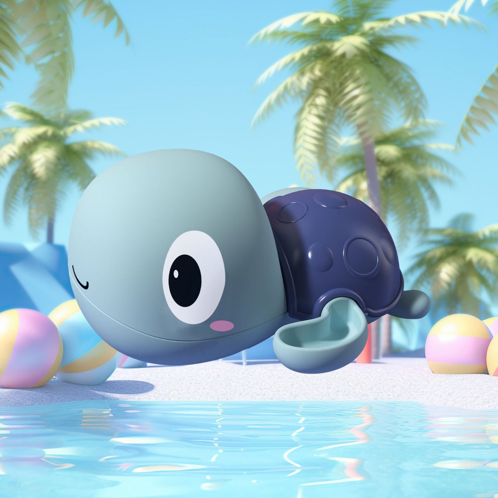 Mėlynas užsukamas plaukiojantis vėžliukas maudynėms