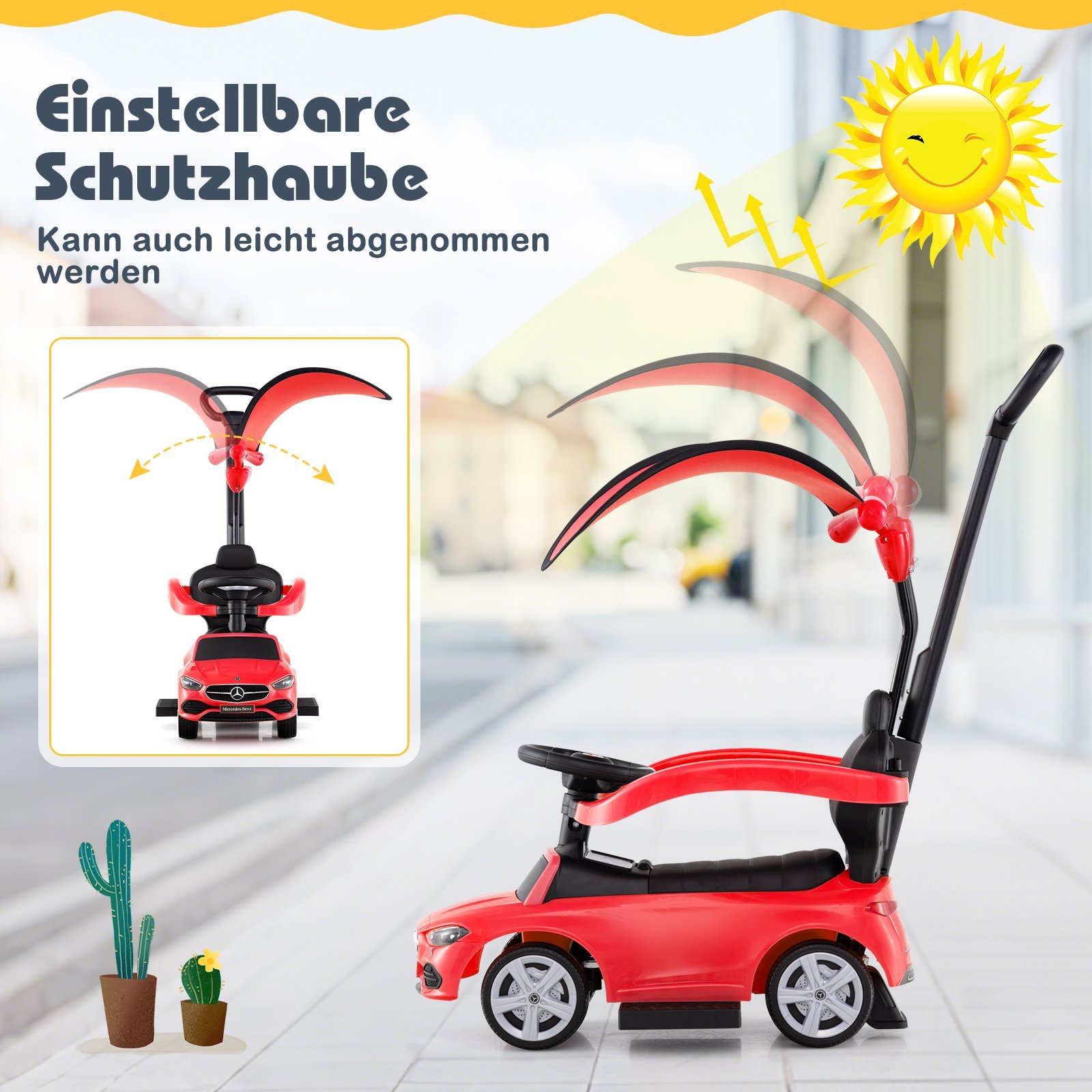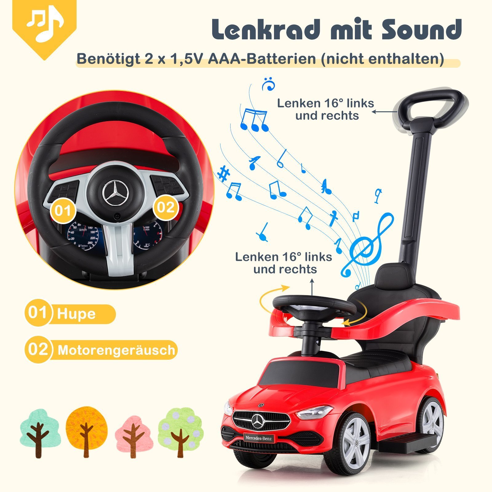 Mercedes-Benz stumiama mašinėlė su stūmimo rankena (Raudona)
