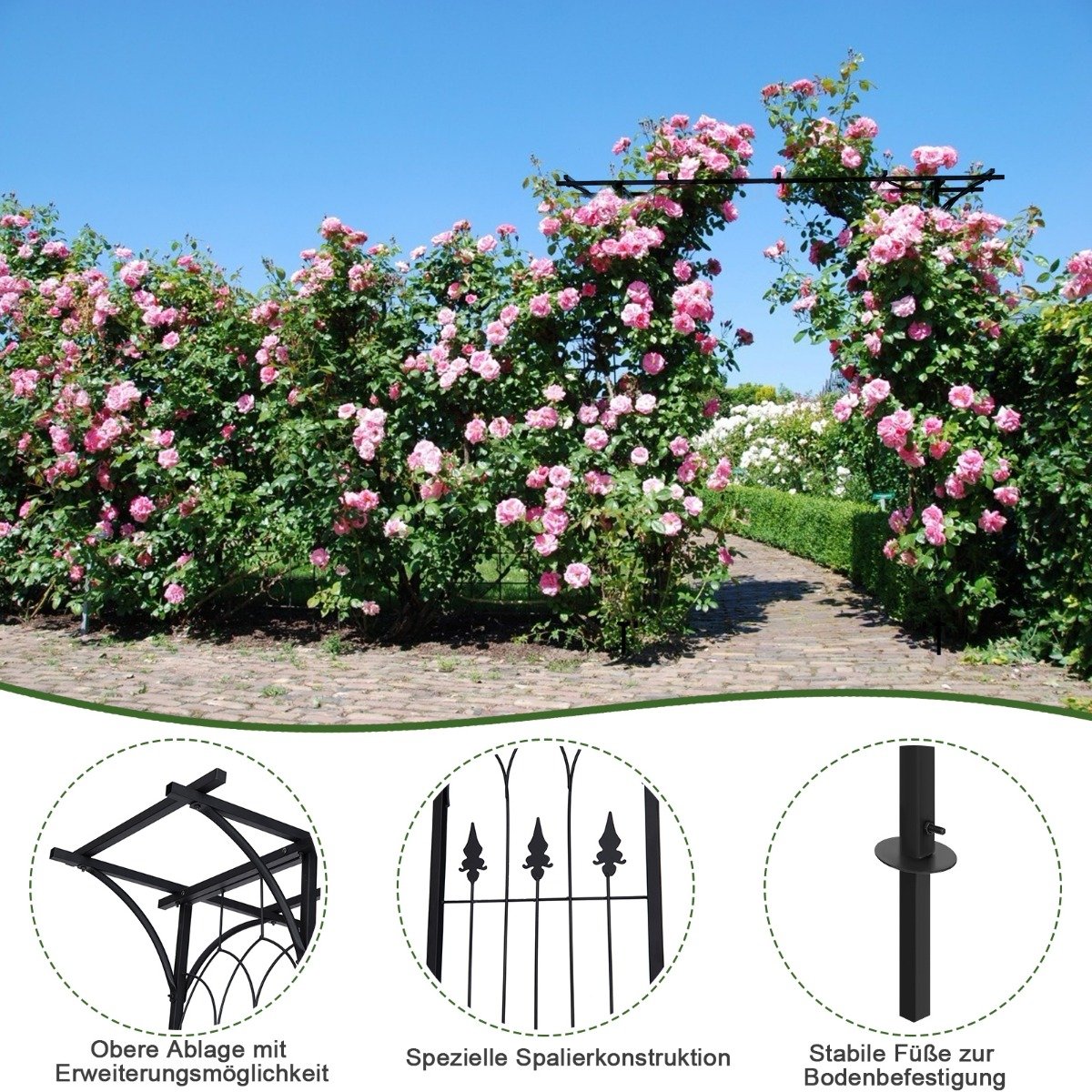 Sukurkite stulbinantį akcentą savo sode ar renginiuose su šiuo tvirtu metaliniu arkos formos gazebos. Jis idealiai tinka vijokliniams augalams augti, suteikdamas jūsų aplinkai elegancijos ir gyvybės. Taip pat galite jį papuošti šventiniams renginiams, kad sukurtumėte nepamirštamą atmosferą.