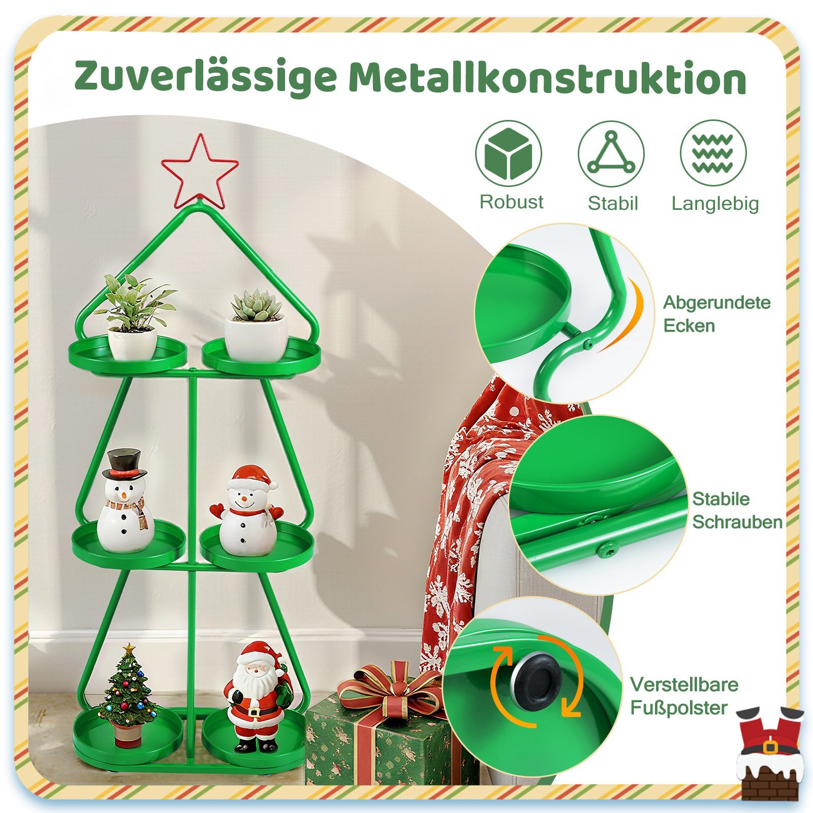 Metalinė eglutės formos 3 pakopų dekoratyvinė lentyna augalams (Žalia)