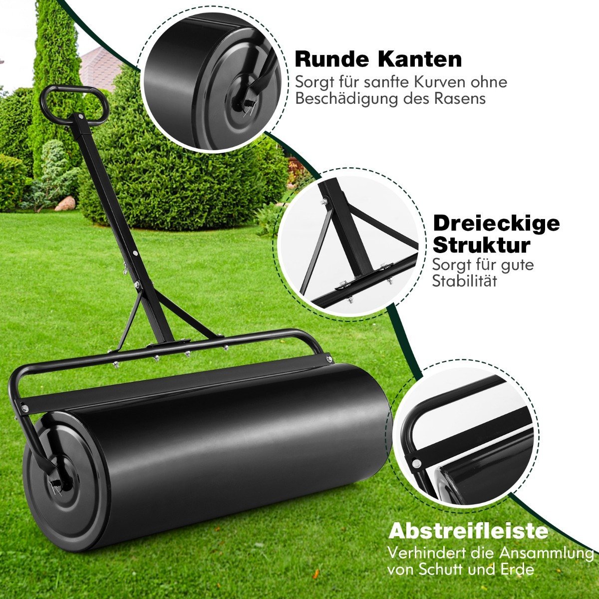Atraskite nepakeičiamą pagalbininką jūsų veja puoselėti. Ši universali 2-in-1 vejos volė pasižymi tvirtu, milteliniu būdu dažytu metaliniu rėmu, atspariu rūdims ir aplinkos poveikiui, užtikrinant ilgalaikį naudojimą lauke.
