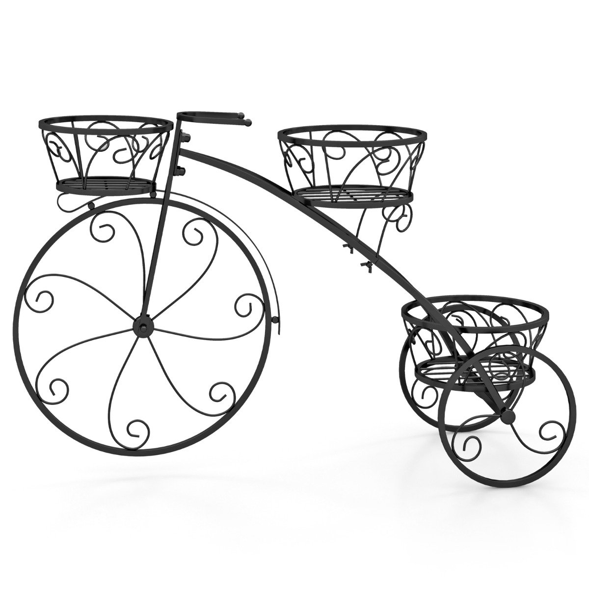 Metalinis gėlių stovas su trimis krepšiais (Juoda)