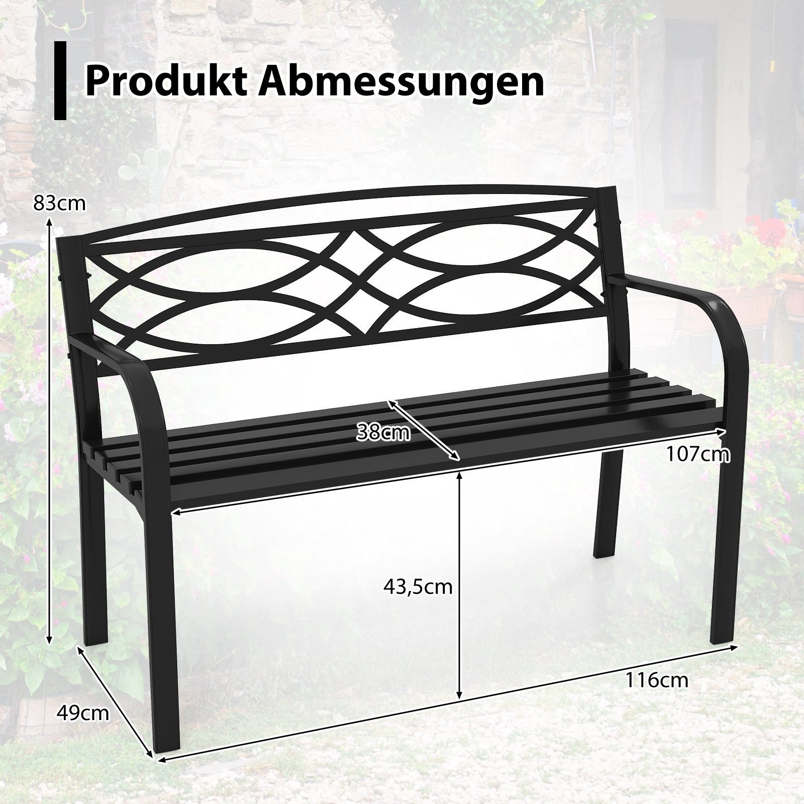 Metalinis lauko suolas su atlošu ir porankiais (Juoda)