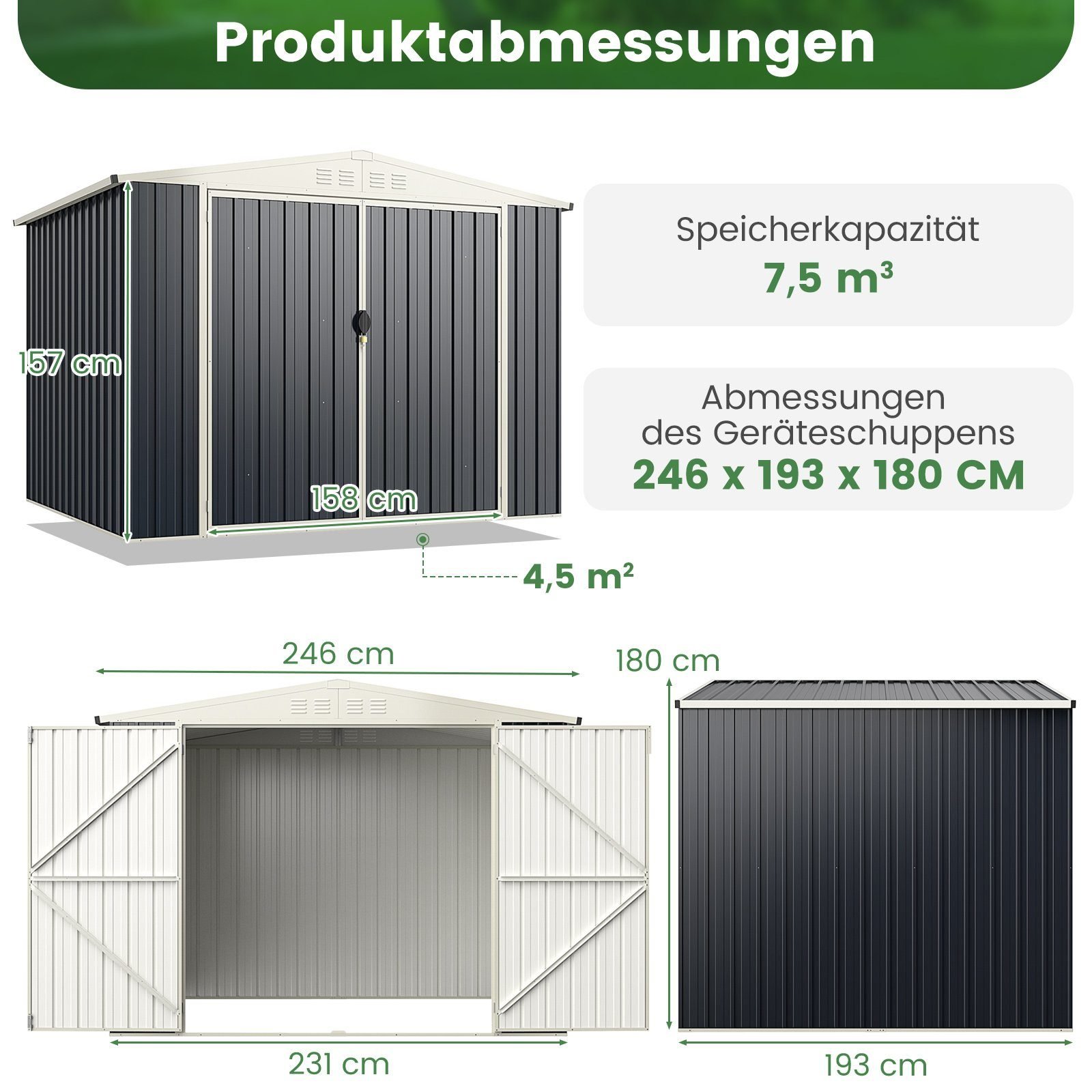 Metalinis sodo namelis su plačiu stogu ir ventiliacija (Pilka)