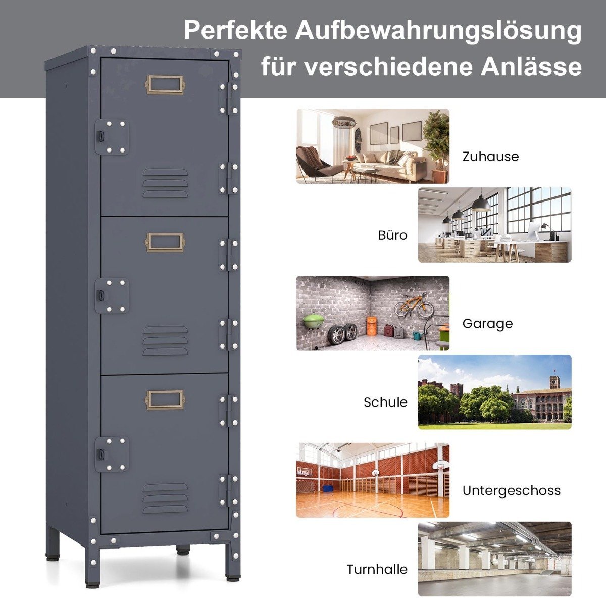 Metalinis su 3 užrakinamomis durelėmis ir reguliuojamomis kojelėmis (Juoda)