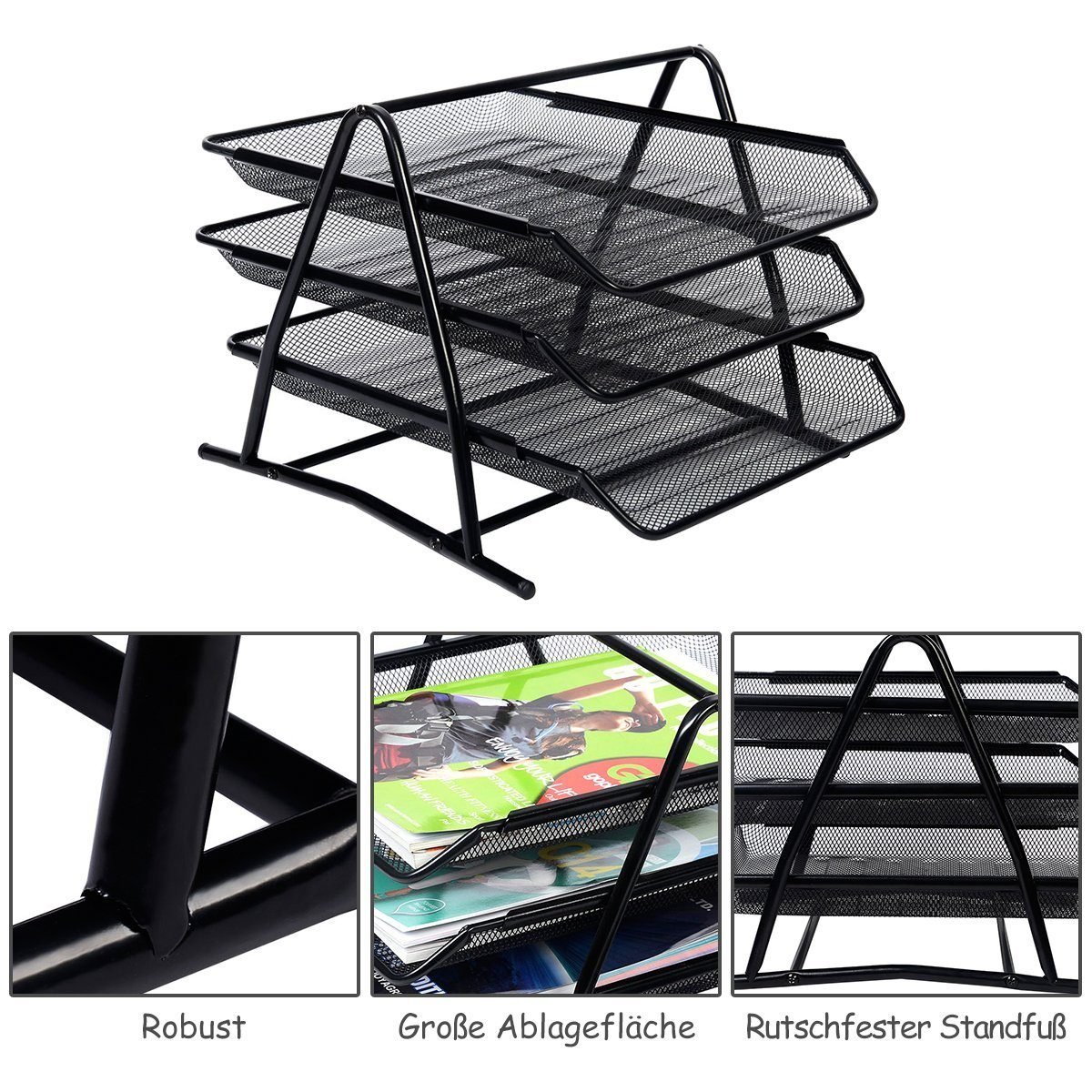 Metalinis trijų lygių dokumentų ir laiškų dėklas (Juoda)