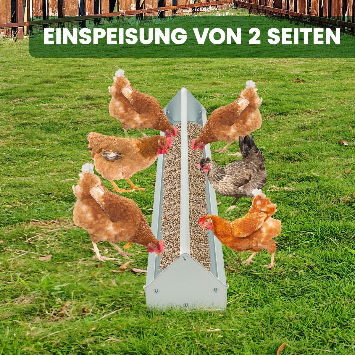 Užtikrinkite savo augintiniams sausą ir šviežią pašarą su šiuo patvariu metaliniu vištų lesintuvu. Jo talpa ir dizainas leidžia patogiai pamaitinti net 12 vištų vienu metu, taip sutaupydami jūsų laiką.