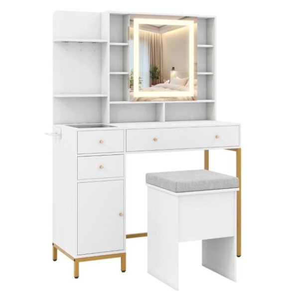 Kosmetinis staliukas su LED veidrodžiu ir integruota įkrovimo stotele (Balta)