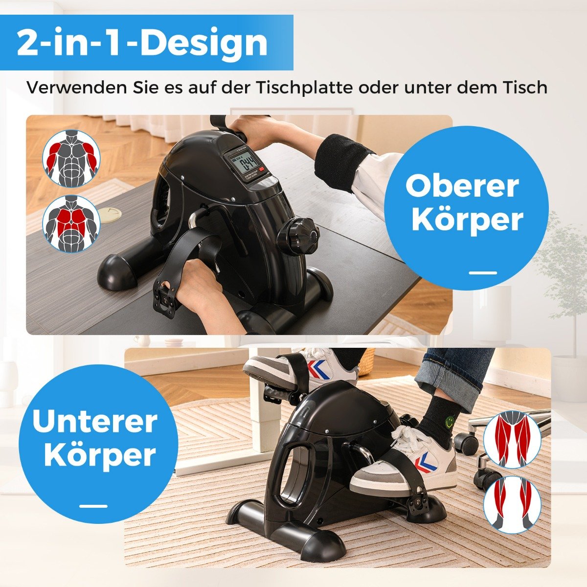 Mini dviratis kojoms ir rankoms su reguliuojamu pasipriešinimu (Juoda)