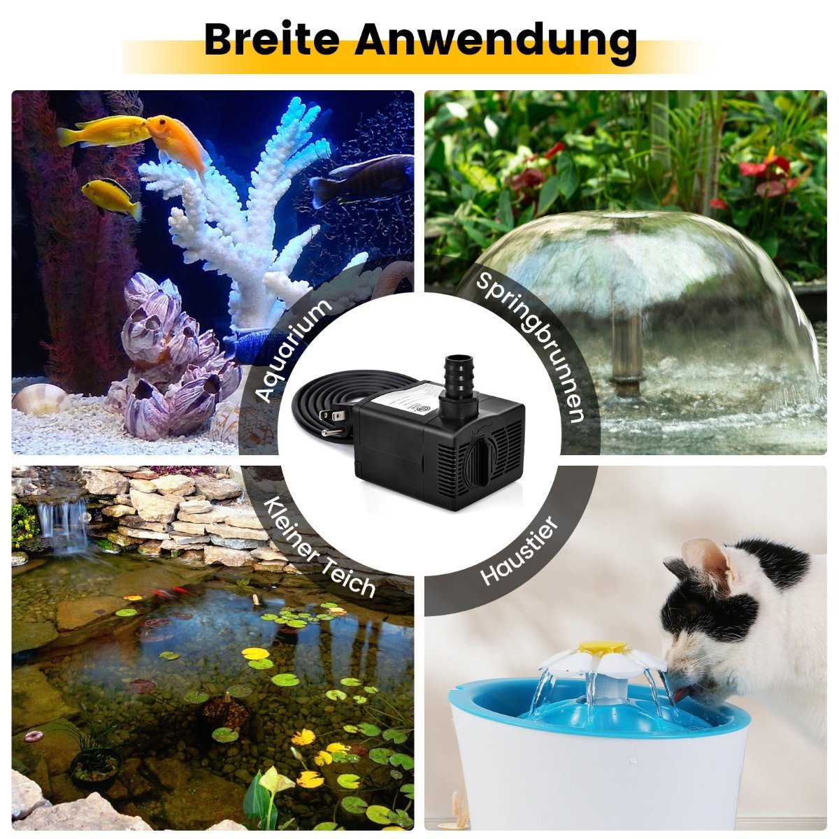 Šis mini vandens siurblys yra galingas ir efektyvus sprendimas įvairioms vandens apytakos reikmėms, pradedant akvariumais, baigiant fontanais ir hidrokultūrų sistemomis. Jis užtikrina patikimą vandens tiekimą ir leidžia sukurti gražius vandens efektus.