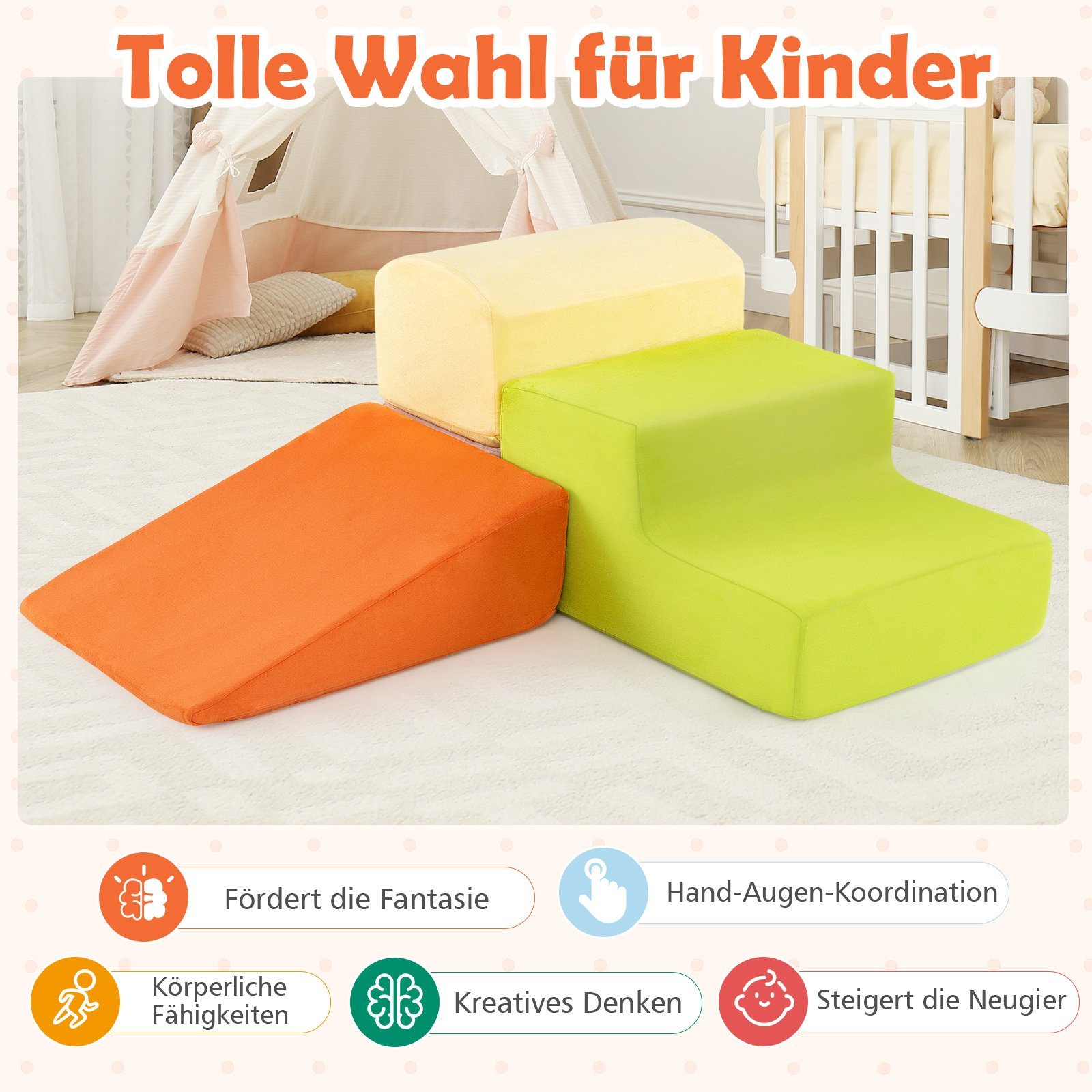 Ieškote patogaus ir saugaus laipiojimo žaislo, skirto vaikų žaidimams namuose? Šis 5 dalių minkštų laipiojimo blokų rinkinys su kamuoliukų baseinu bus idealus pasirinkimas Jūsų mažyliams. Pagamintas iš odai draugiškų audinių ir minkšto putplasčio, jis užtikrina saugią bei patogią žaidimo aplinką, skatindamas motorinių įgūdžių ir koordinacijos lavinimą. Lengvai prižiūrimi ir skalbiami užvalkalai bei saugi konstrukcija be aštrių kraštų suteiks ramybės tėvams.
