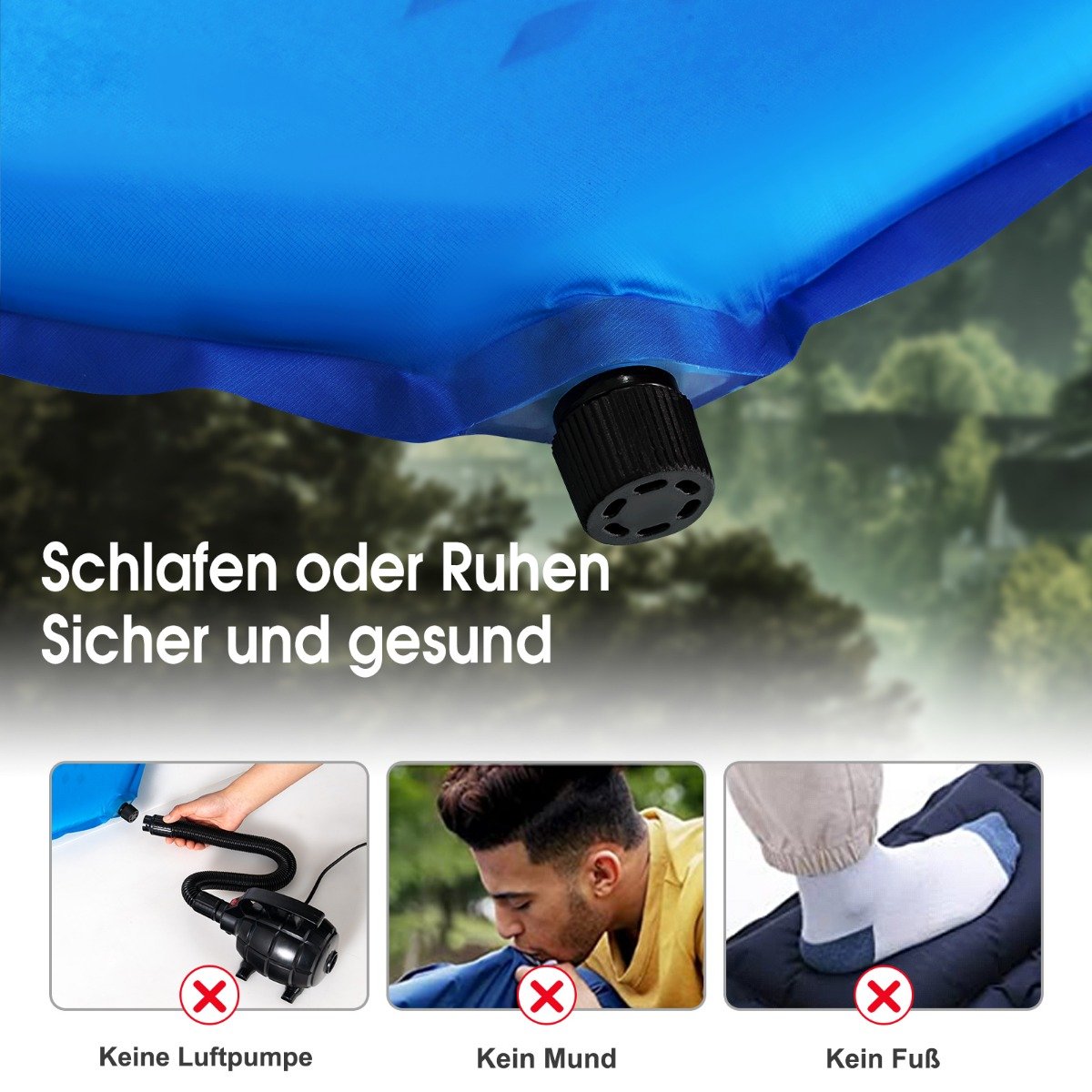 Minkštas ir patogus 200×65 cm kempingo čiužinys (Mėlyna)
