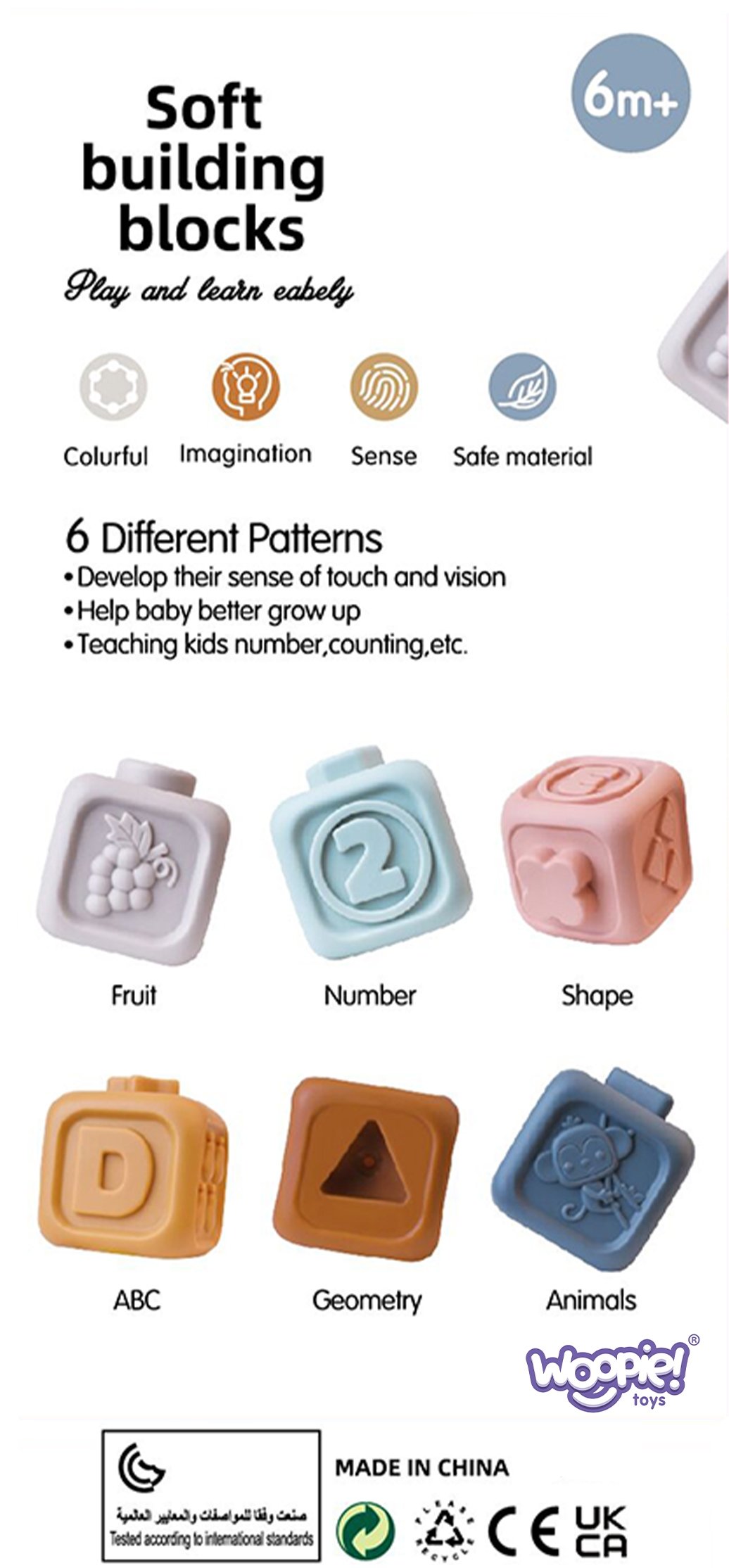 „WOOPIE“ prekės ženklo pastelinių spalvų kaladėlių su skaičiais rinkinys sukurtas patiems mažiausiems, siūlantis daugybę edukacinių ir sensorinių galimybių. Kiekviena iš šešių kaladėlių supažindina mažylį su skaičių pasauliu, kartu lavindamos įvairius pojūčius ir įgūdžius.