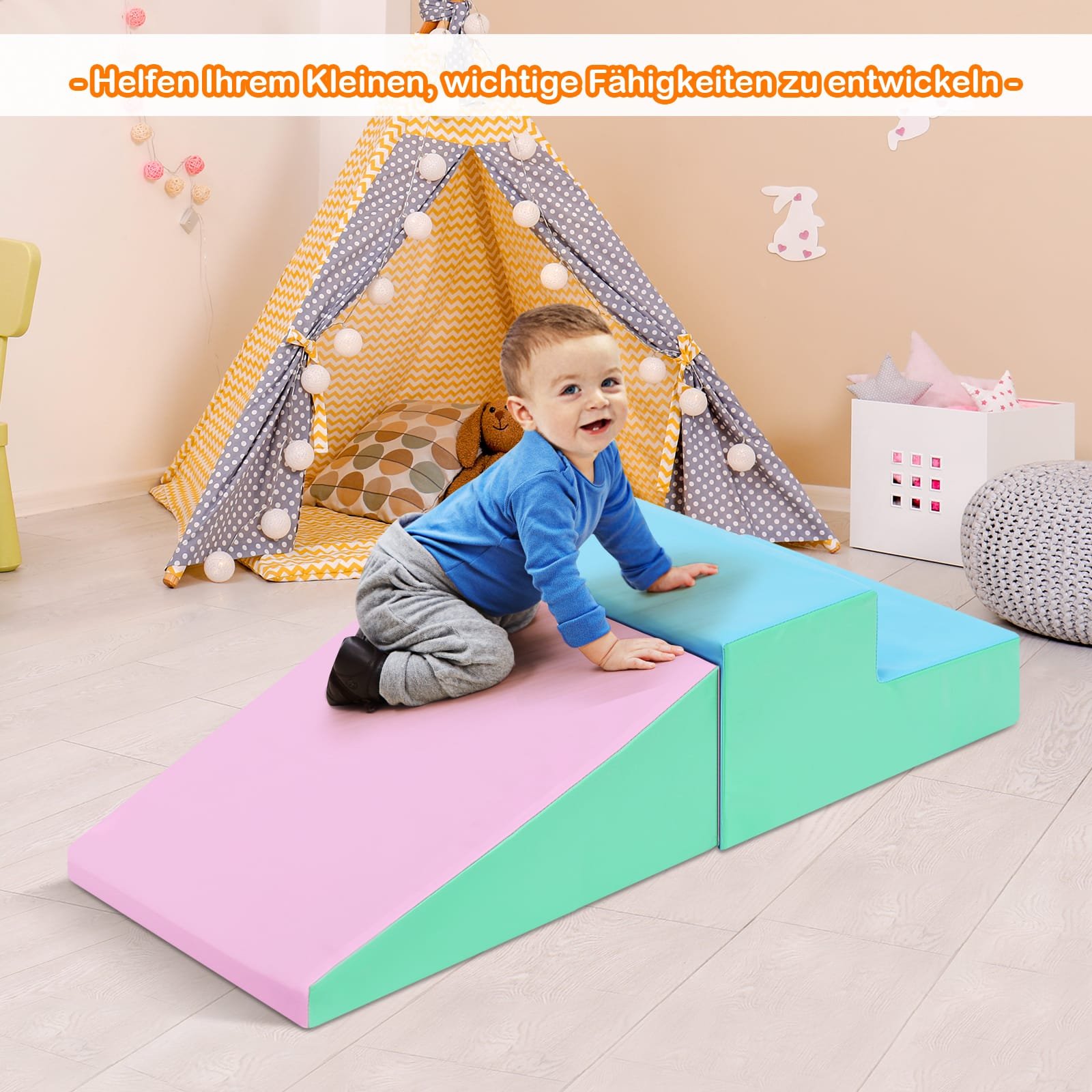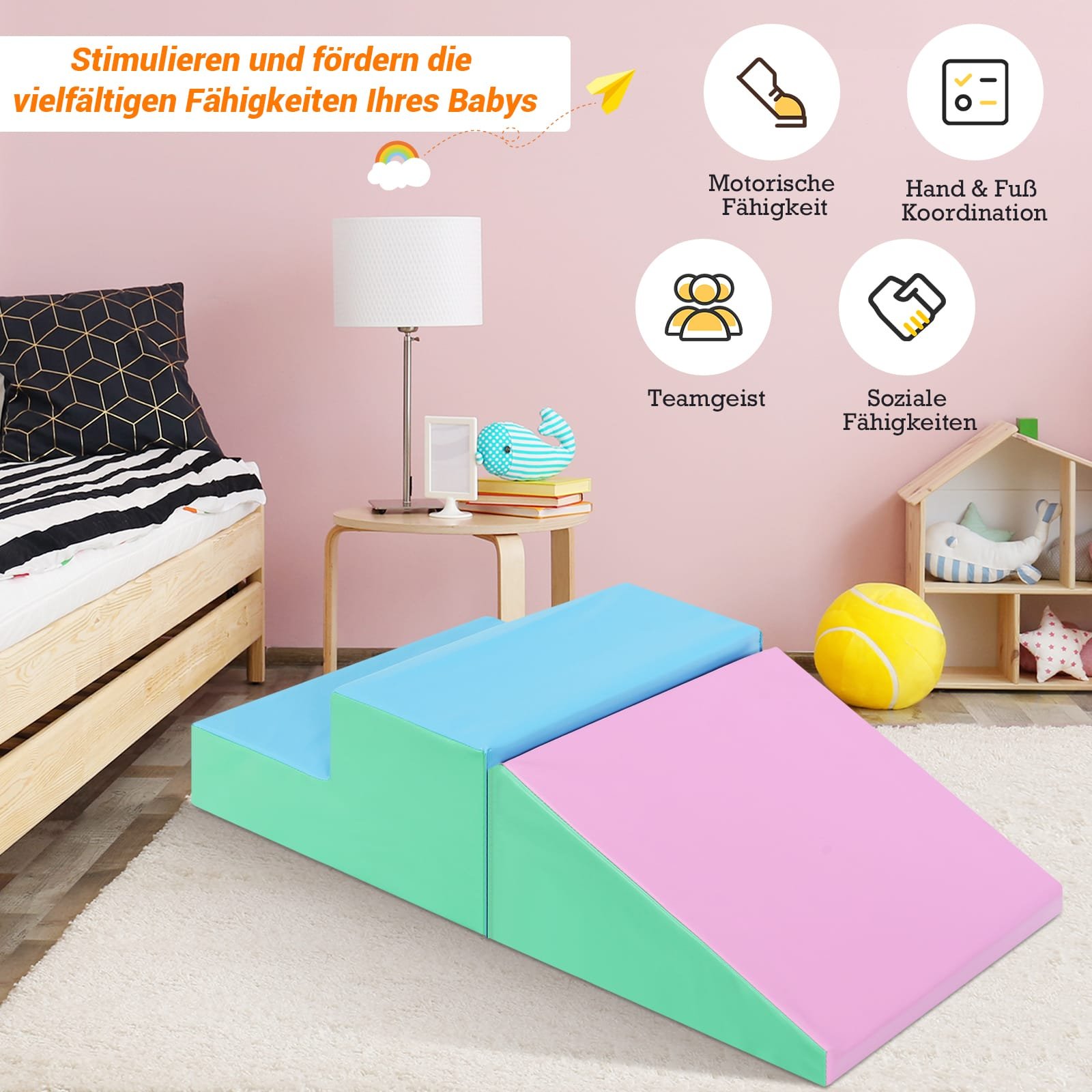 Ieškote saugaus ir smagaus žaislo savo vaikui? Šis 2 dalių laipiojimo ir čiuožimo kaladėlių rinkinys – ideali dovana. Žaisdami vaikai gali lavinti motorinius įgūdžius, rankų ir akių koordinaciją bei ugdyti pasitikėjimą savimi. Ryškios spalvos padarys šį rinkinį patrauklų bet kurioje erdvėje.