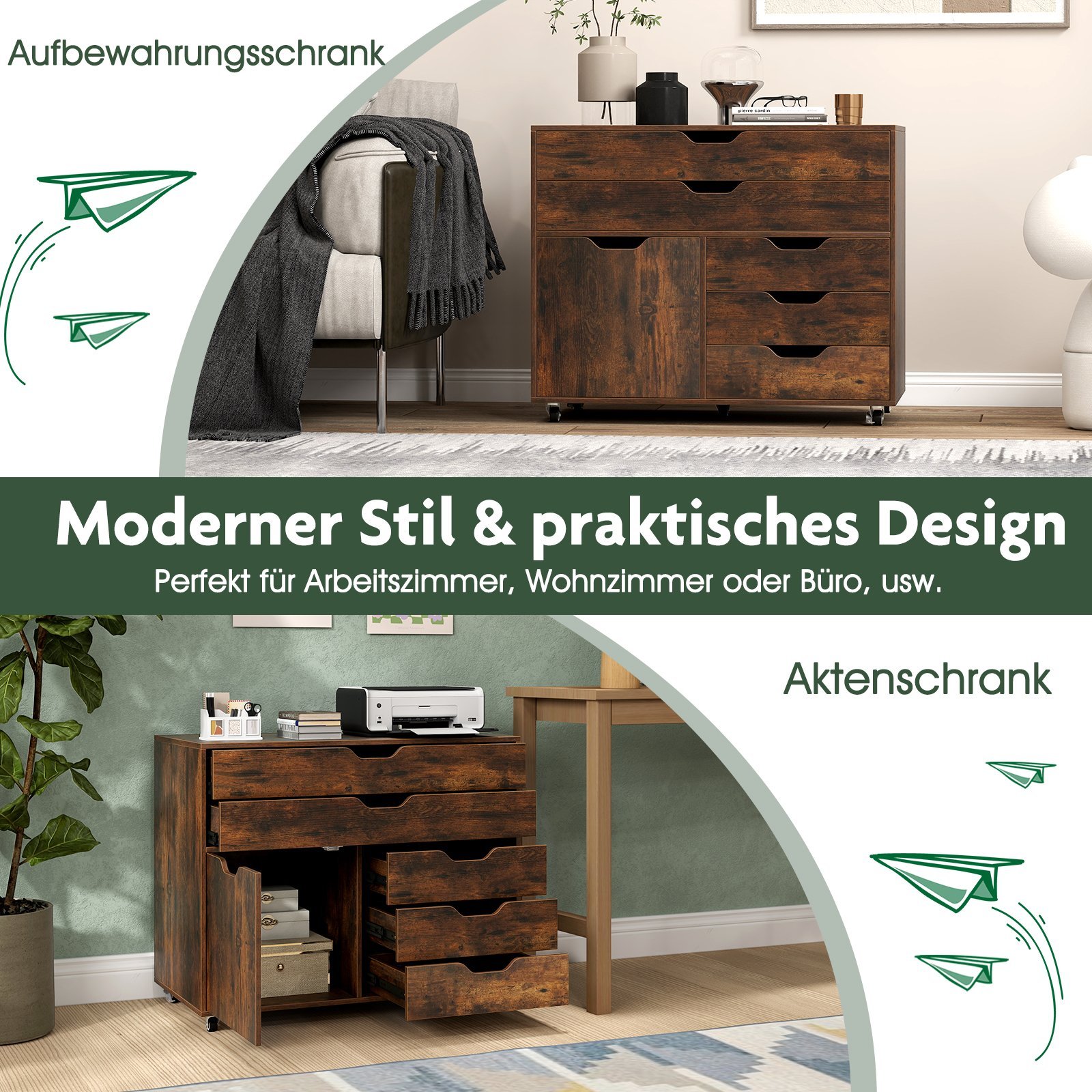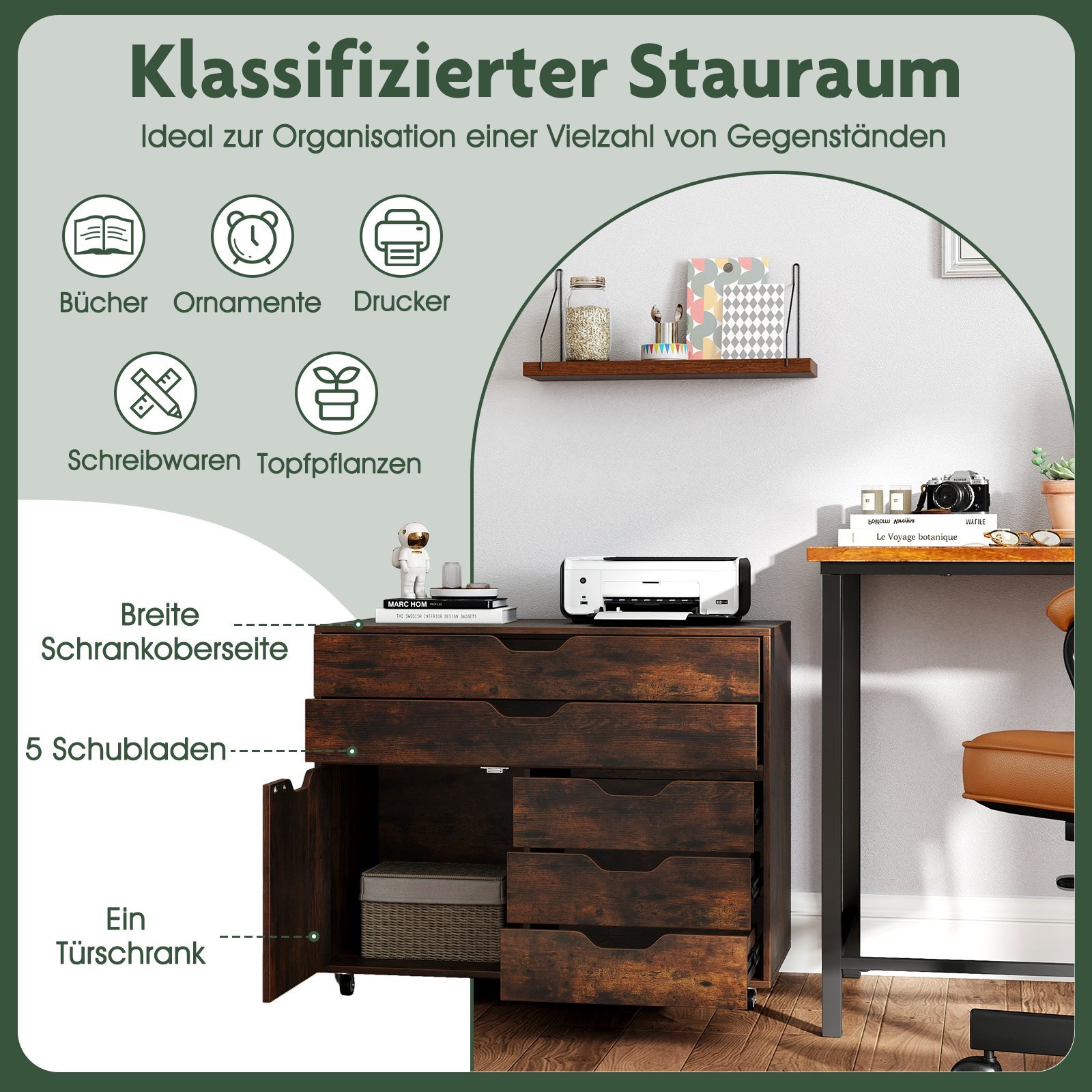Mobili biuro spintelė su 5 stalčiais ir atidaroma spintele (Ruda)