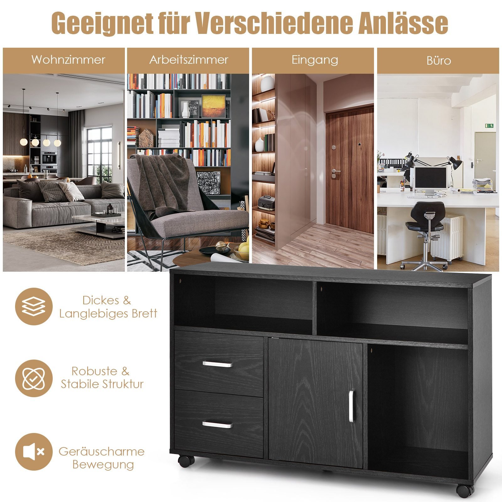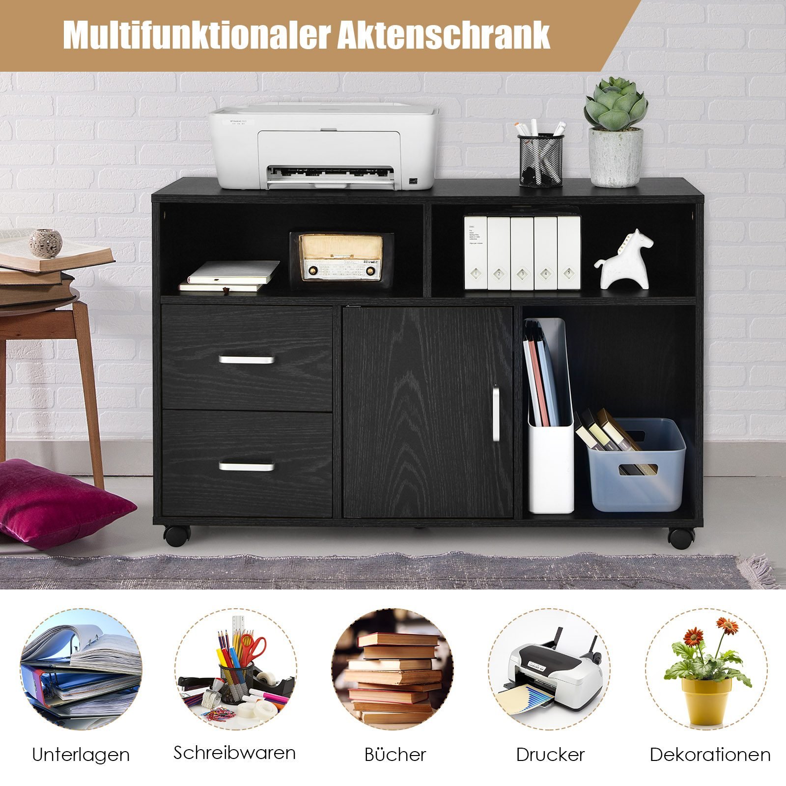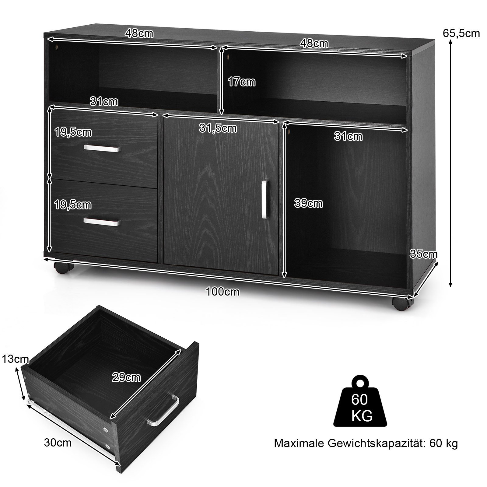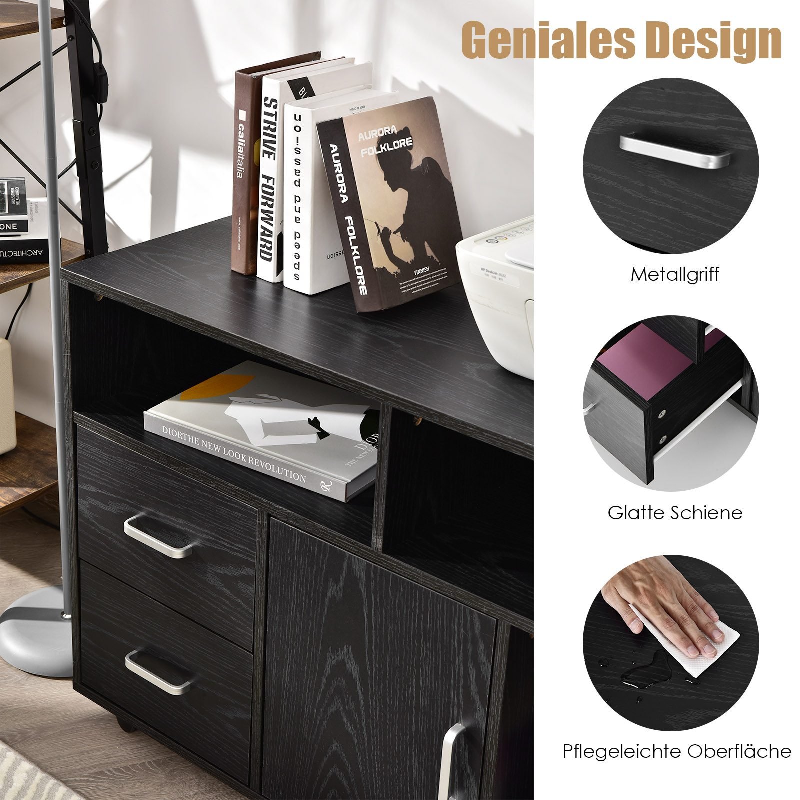 Mobilus biuro spintelė su dviem stalčiais ir trimis atviromis lentynomis (Juoda)