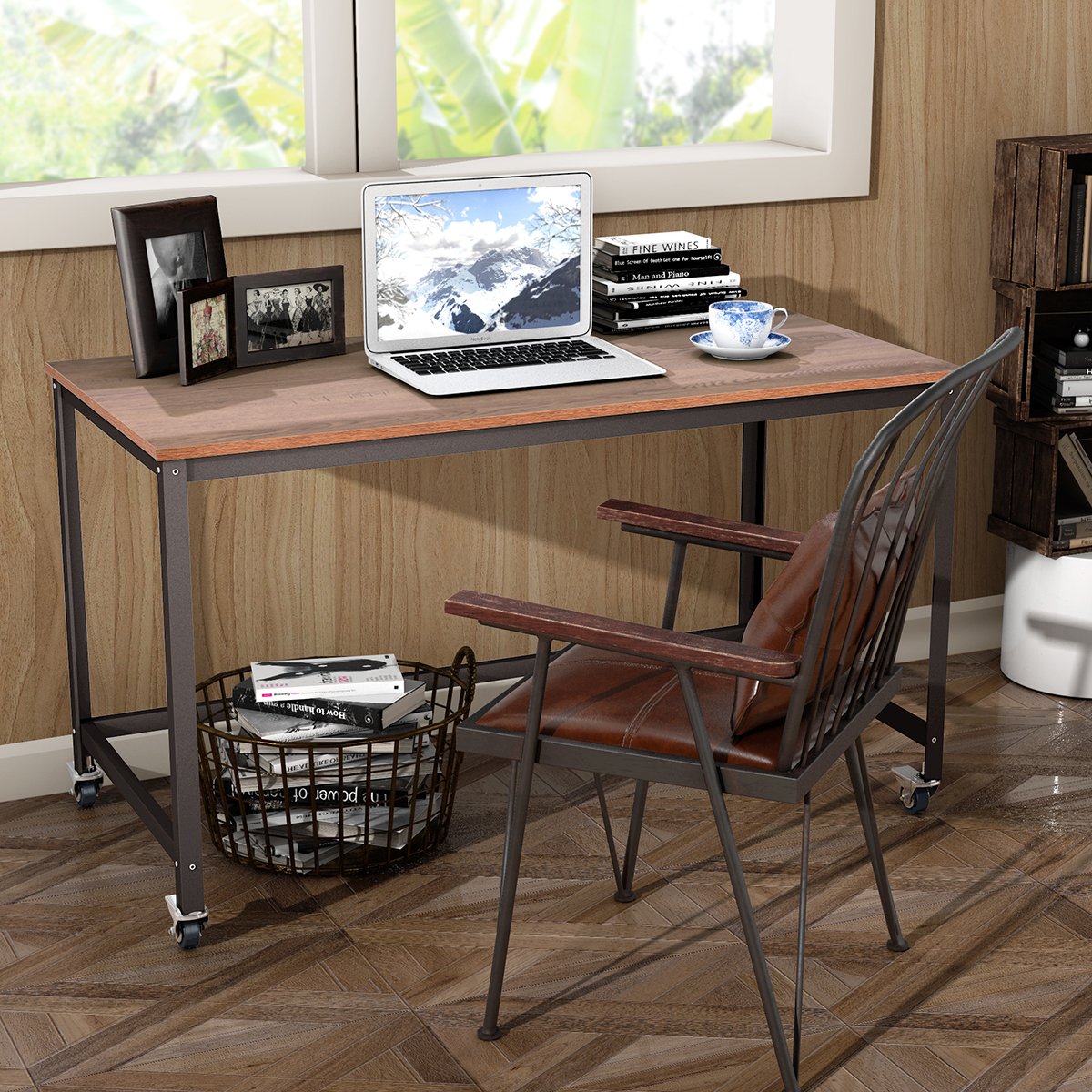 Mobilus biuro stalas su metaliniu rėmu 120x60x75 cm (Ruda)
