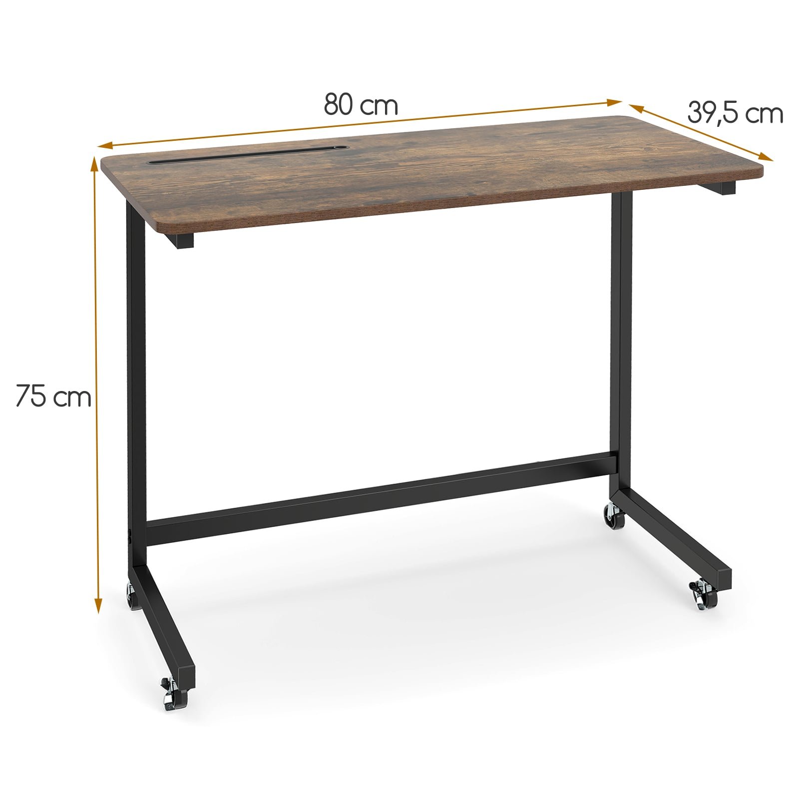 Pagerinkite savo gyvenamąją erdvę su šiuo mobiliuoju šoniniu staliuku. Jo erdvus stalviršis ir patogus įmontuotas skyrius užtikrins, kad visi reikalingi daiktai būtų po ranka. Keturi sukiojami ratukai (du su fiksatoriais) užtikrina lengvą staliuko judėjimą ir stabilų fiksavimą norimoje vietoje. C formos dizainas leidžia staliuką patogiai pritraukti prie sofos, lovos ar fotelio, maksimaliai išnaudojant erdvę.
