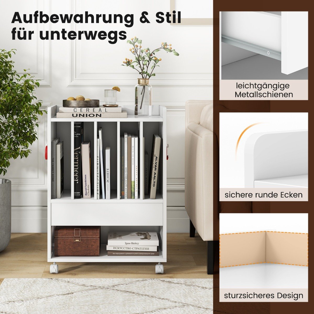 Mobilus garso technikos stalas su stalčiumi ir ratukais (Balta)