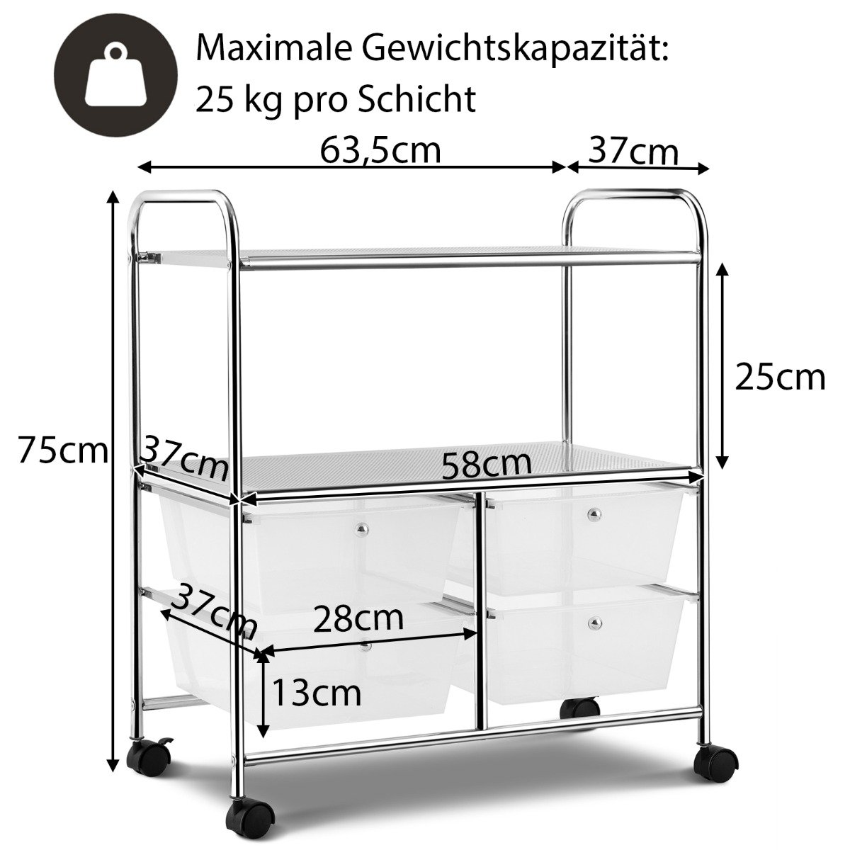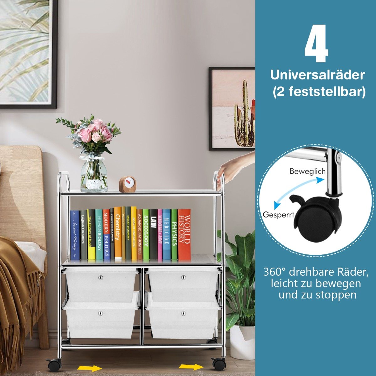 Mobilus keturių stalčių vežimėlis su ratukais (Skaidri)