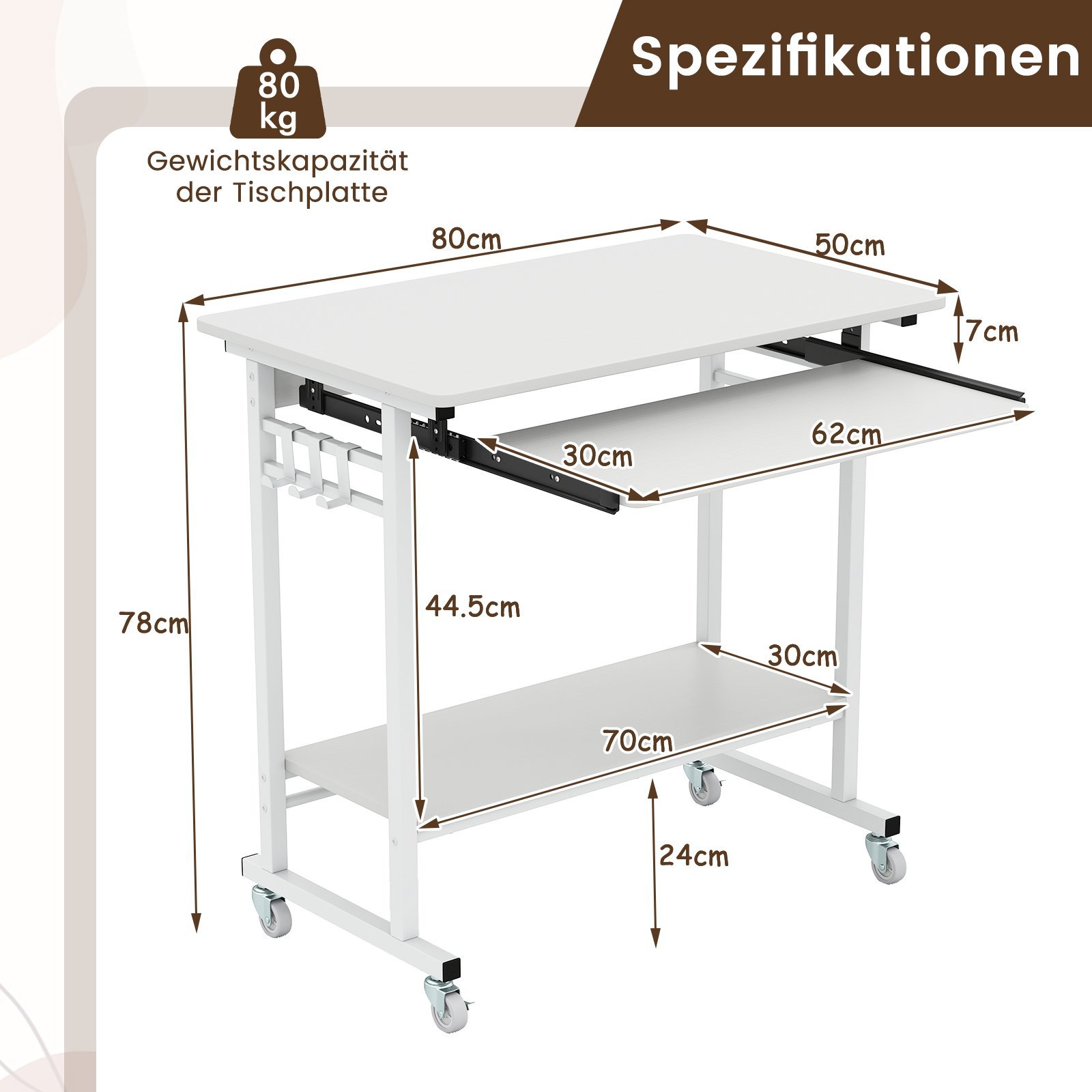 Mobilus kompiuterio stalas su ištraukiamu klaviatūros stalčiumi (Balta)