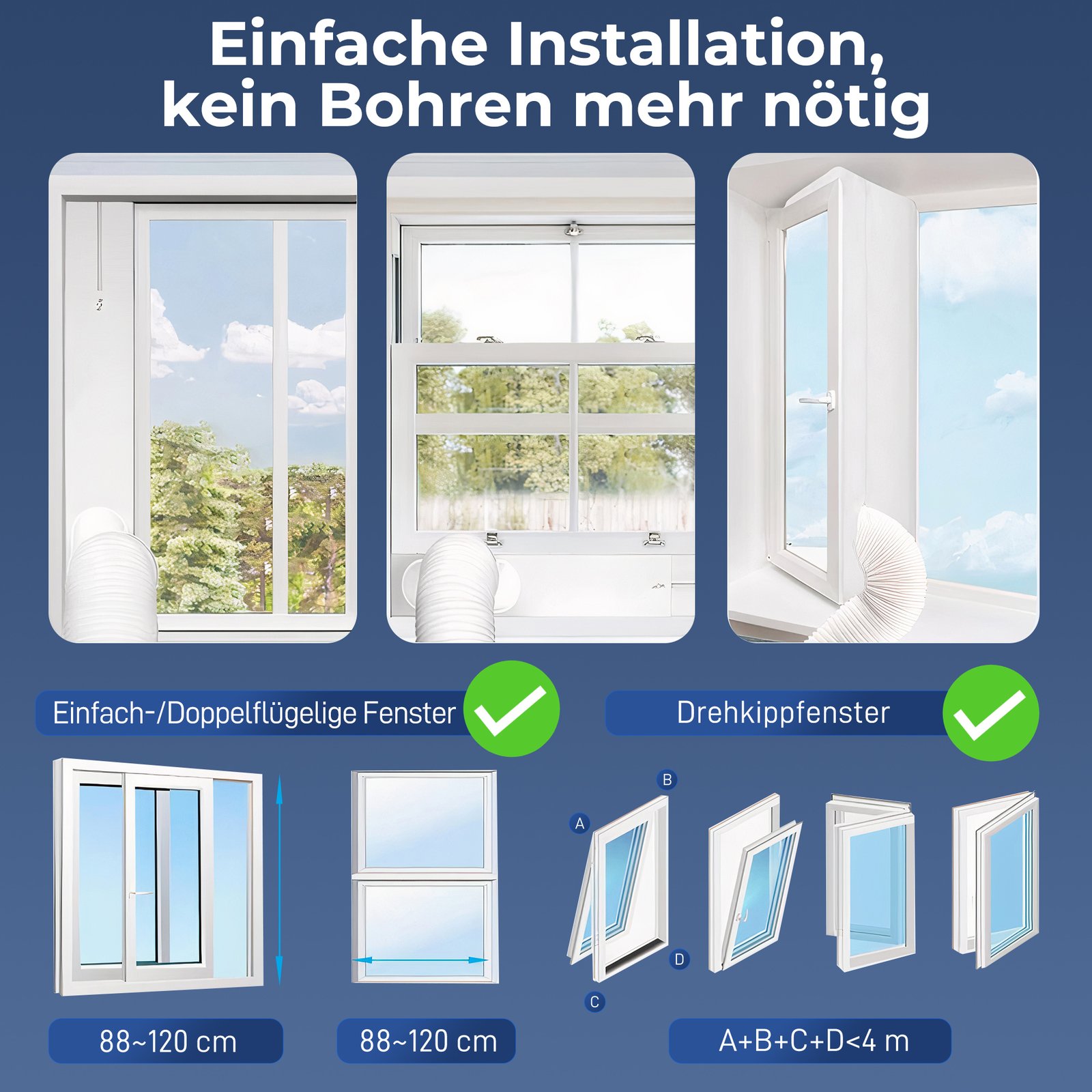✔ Komplektuojamas su slankiojančių ir atverčiamų langų montavimo rinkiniais, kad montavimas būtų lengvas, idealus oro kondicionierius su išmetimo žarna