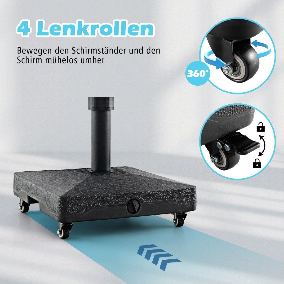Mobilus skėčio stovas su ratukais užpildomas vandeniu ar smėliu (Juoda)