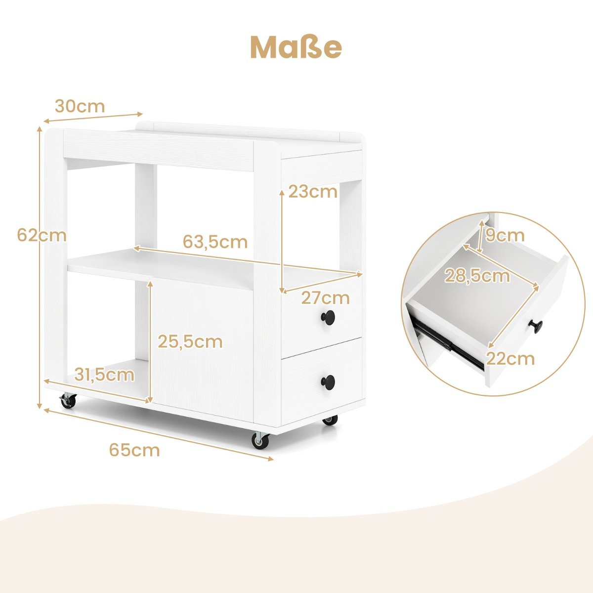 • Apatinės lentynos matmenys: 31,5 x 27 x 25,5 cm (Ilgis x Plotis x Aukštis)
