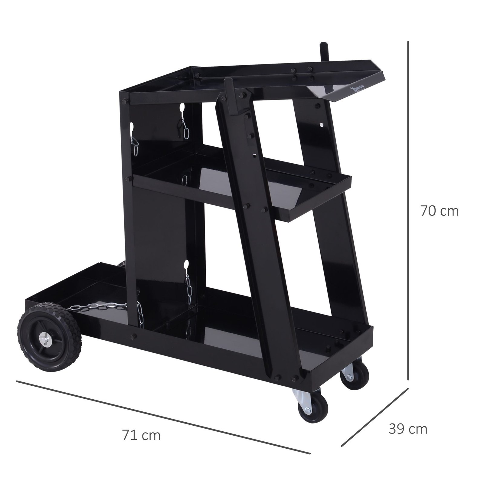 Mobilus suvirinimo vežimėlis su 3 lentynomis ir saugos grandinėmis dujų balionams