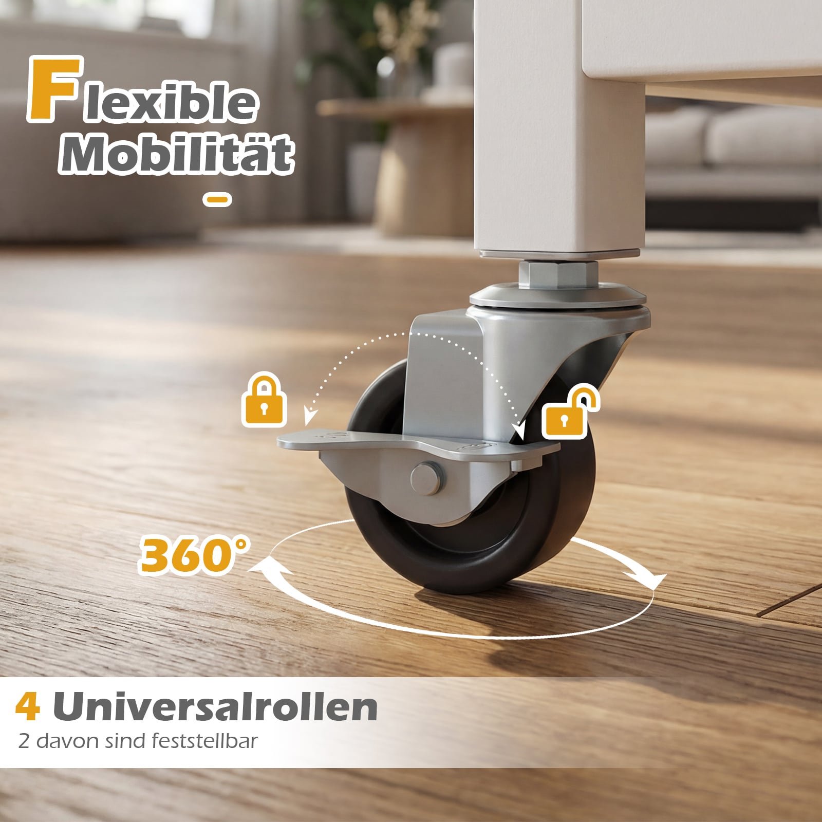 - Mobilus dizainas su 4 ratukais, iš kurių 2 yra fiksuojami.