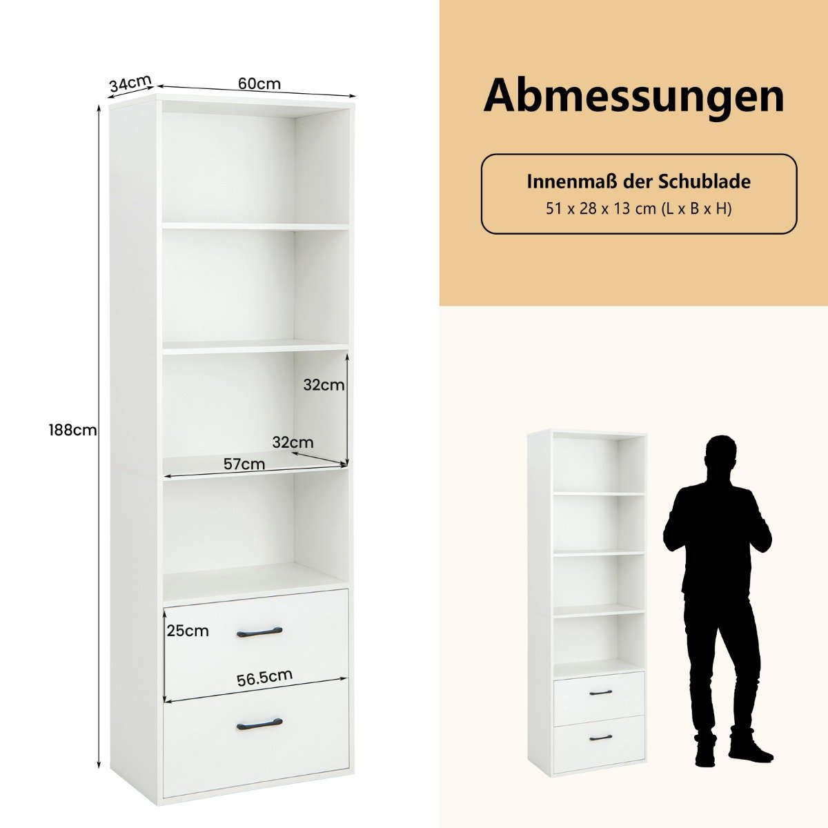 - Lentynos matmenys: 57 x 32 x 32 cm (Ilgis x Plotis x Aukštis)