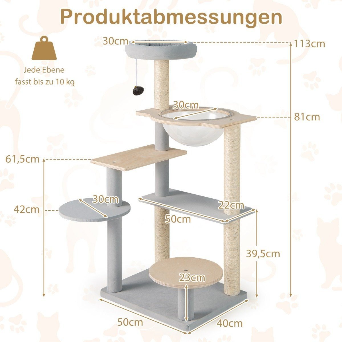 Užtikrinkite savo katei komfortą ir pramogas su mūsų modernia draskykle! Permatoma kapsulė suteikia jaukų kampelį, kur katė gali ilsėtis ir saugiai stebėti aplinką. Papildoma nuimama, minkšta apžvalgos platforma viršuje – puiki vieta snausti ar stebėti savo karalystę. Su šia draskykle jūsų augintiniui netrūks veiklos!
