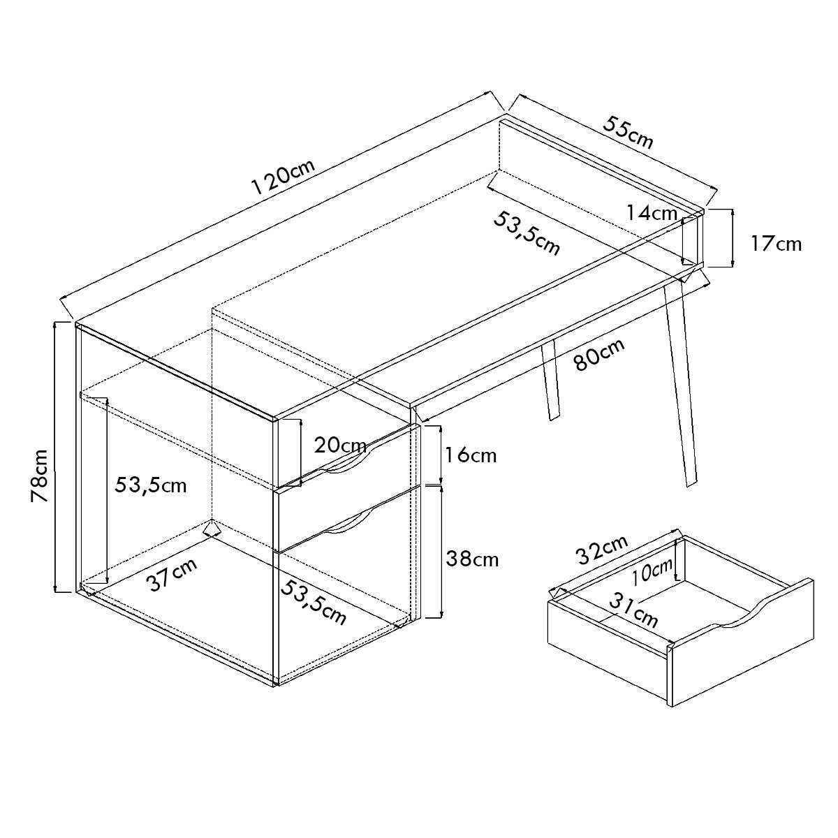 - Matmenys: 120 x 55 x 78 cm (Ilgis x Plotis x Aukštis)