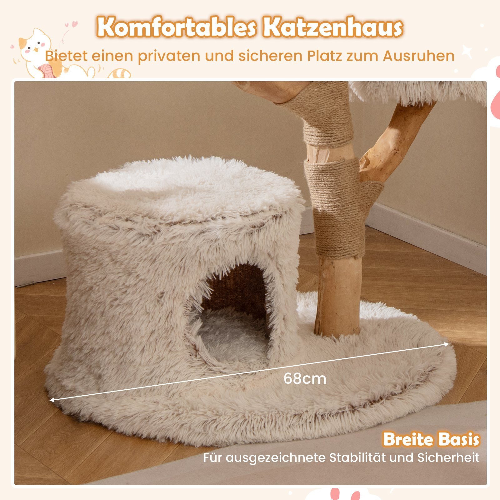 - 1 x Natūralaus medžio katės draskymo medis