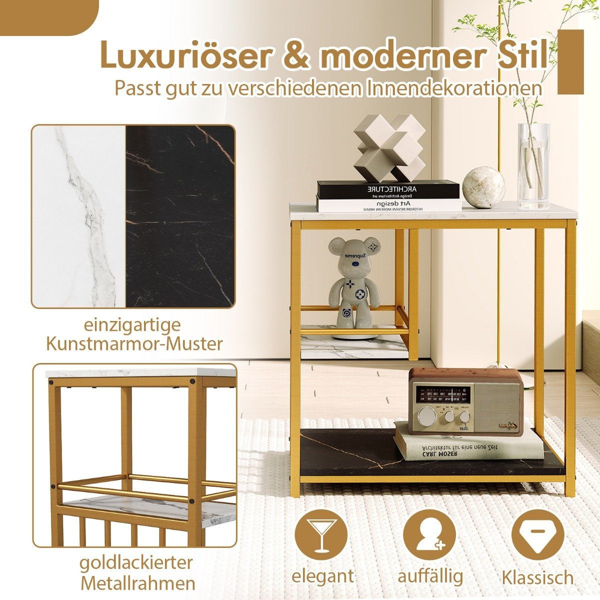 Praturtinkite savo namus prabanga ir funkcionalumu su šiuo moderniu 3 pakopų staleliu. Jo auksaspalvis metalinis rėmas užtikrina tvirtumą ir šiuolaikišką išvaizdą, o dirbtinio marmuro lentynos suteikia elegancijos.