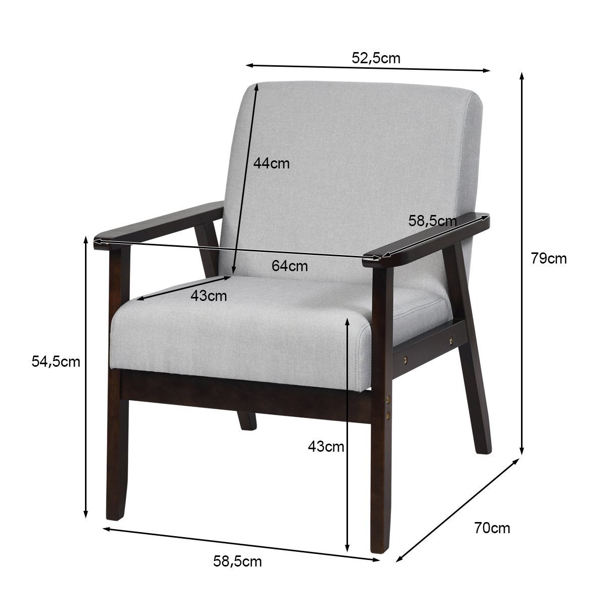 - Bendri matmenys: 64 x 70 x 79 cm (Ilgis x Plotis x Aukštis)