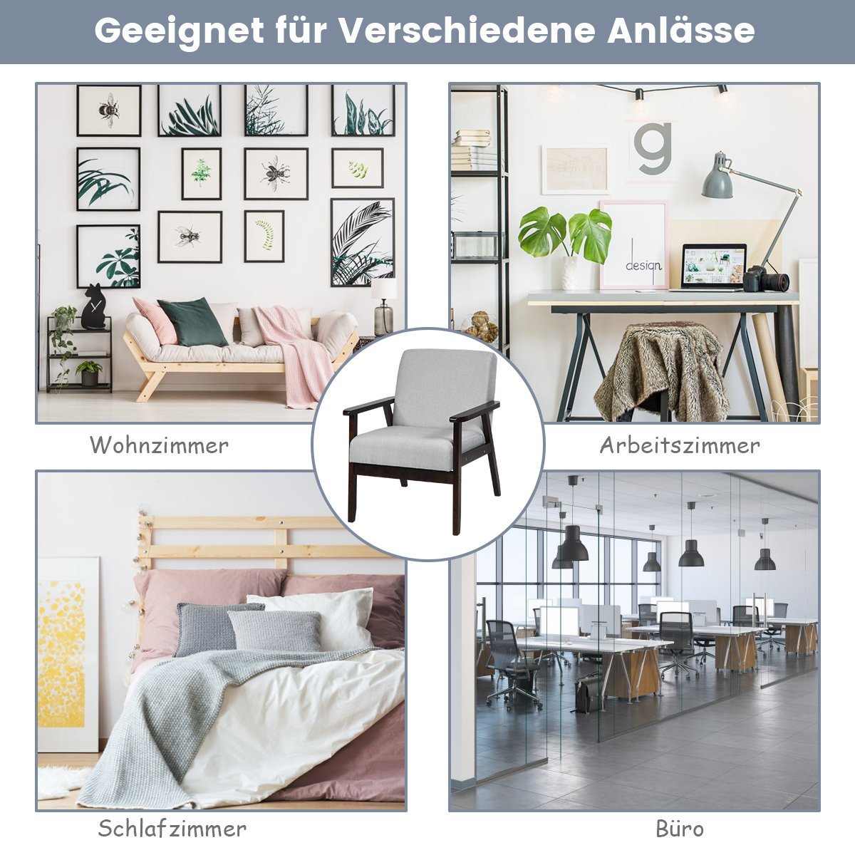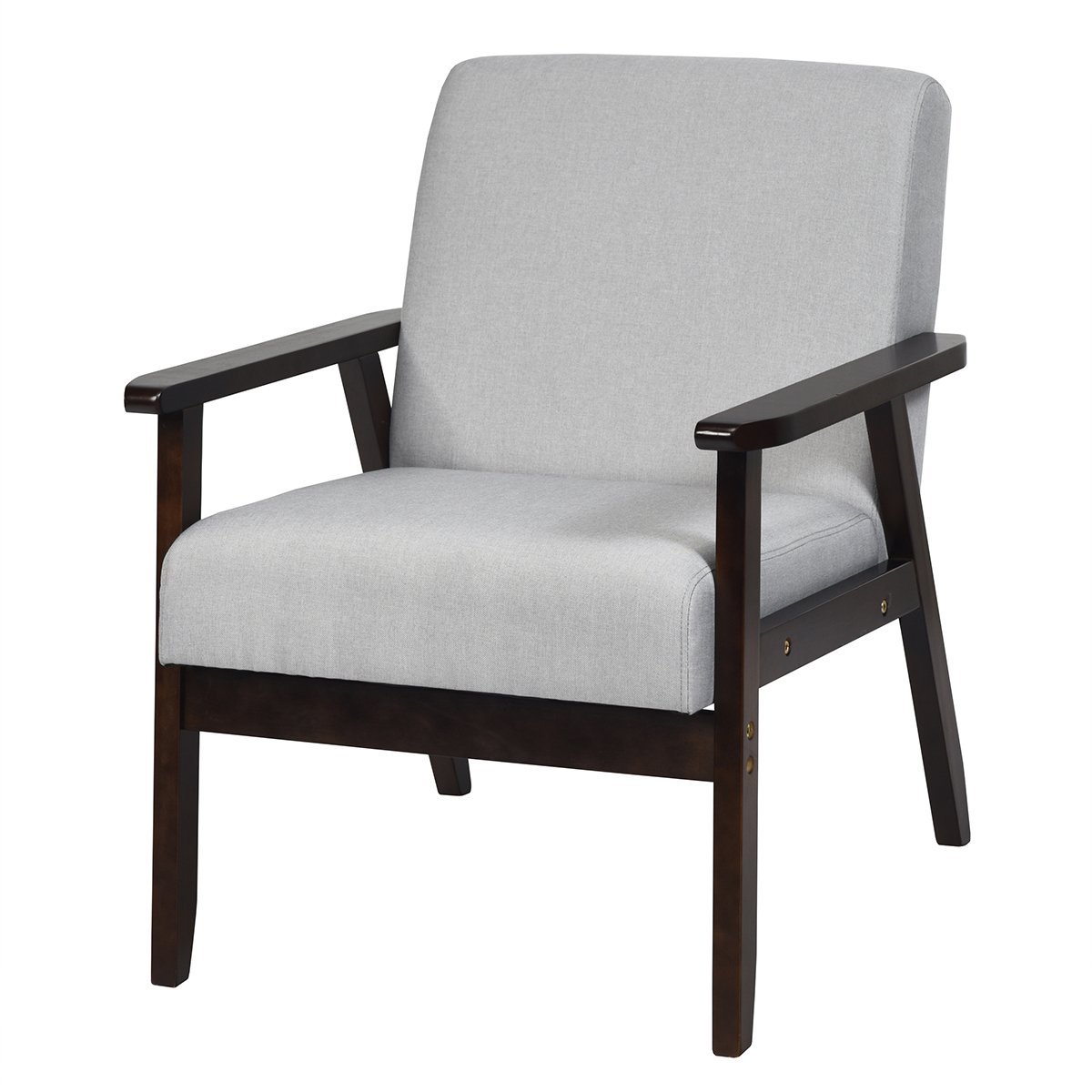 Modernus minkštas akcentinis krėslas su kaučiukmedžio kojomis (Šviesiai pilka)