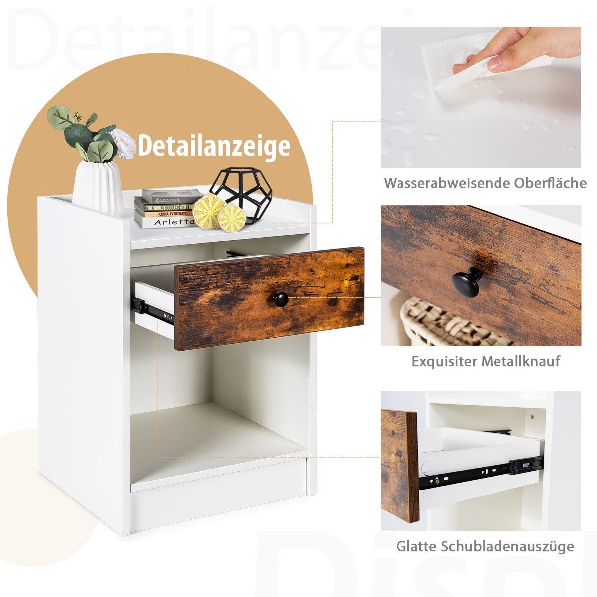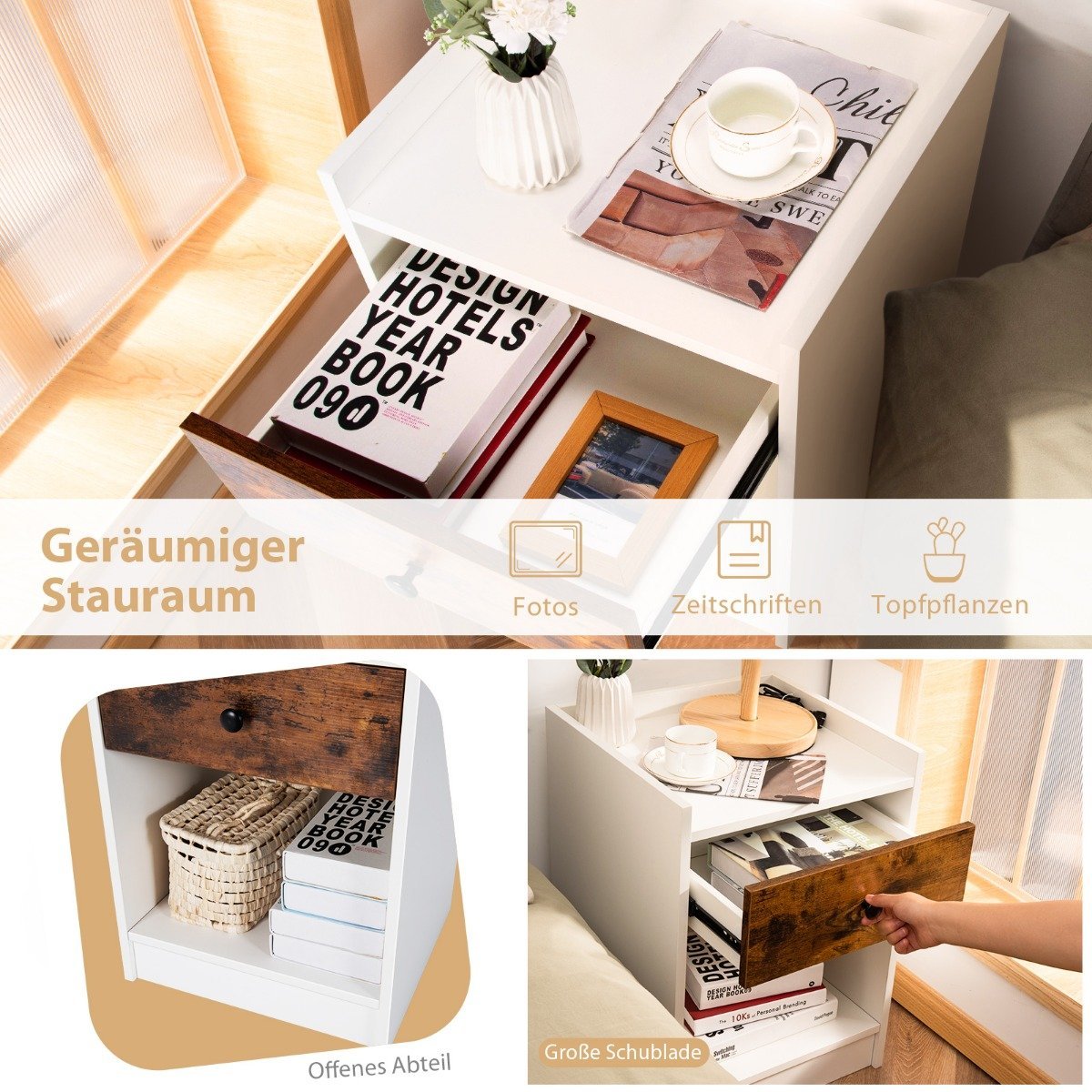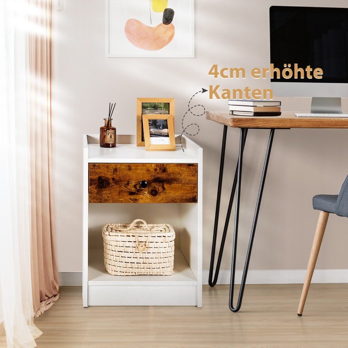 Modernūs naktiniai staliukai su stalčiumi ir atviru skyriumi 2 vienetai (Balta)