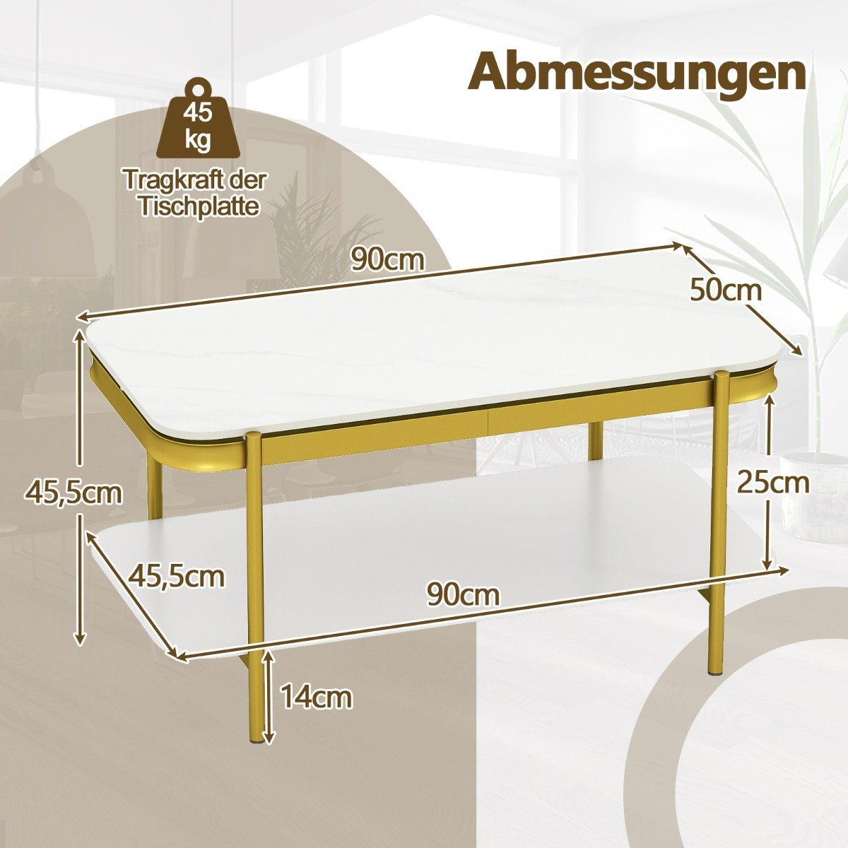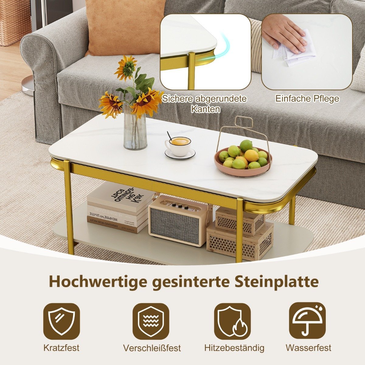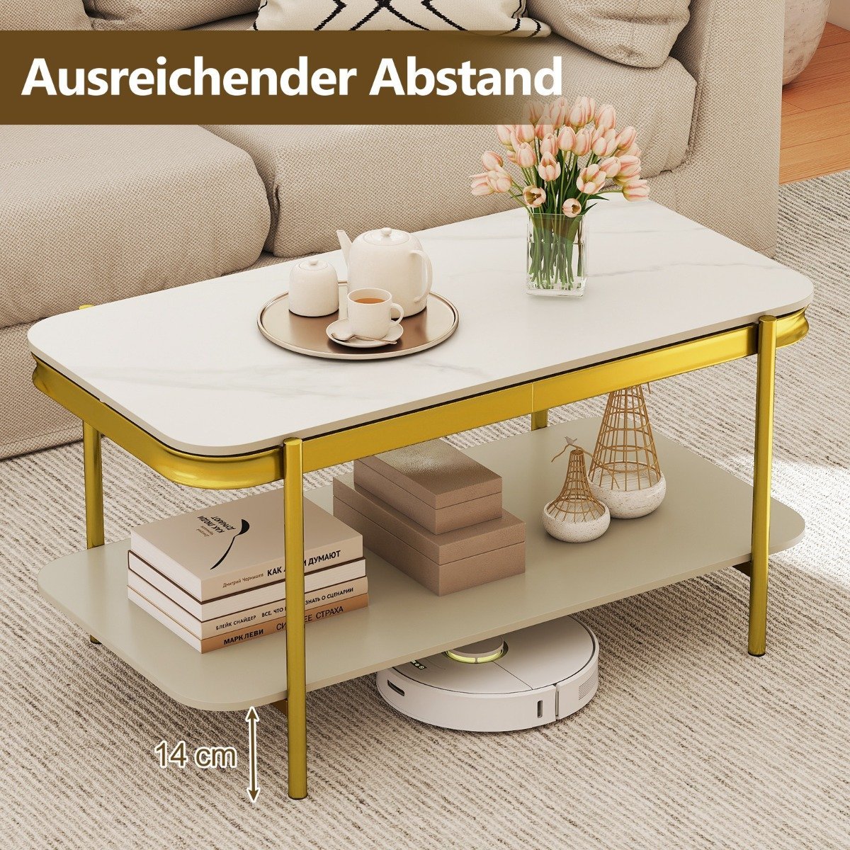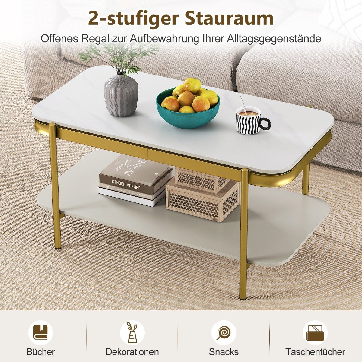 Modernus stačiakampis kavos staliukas su sukepinto akmens stalviršiu ir 2 pakopų saugykla (Balta)