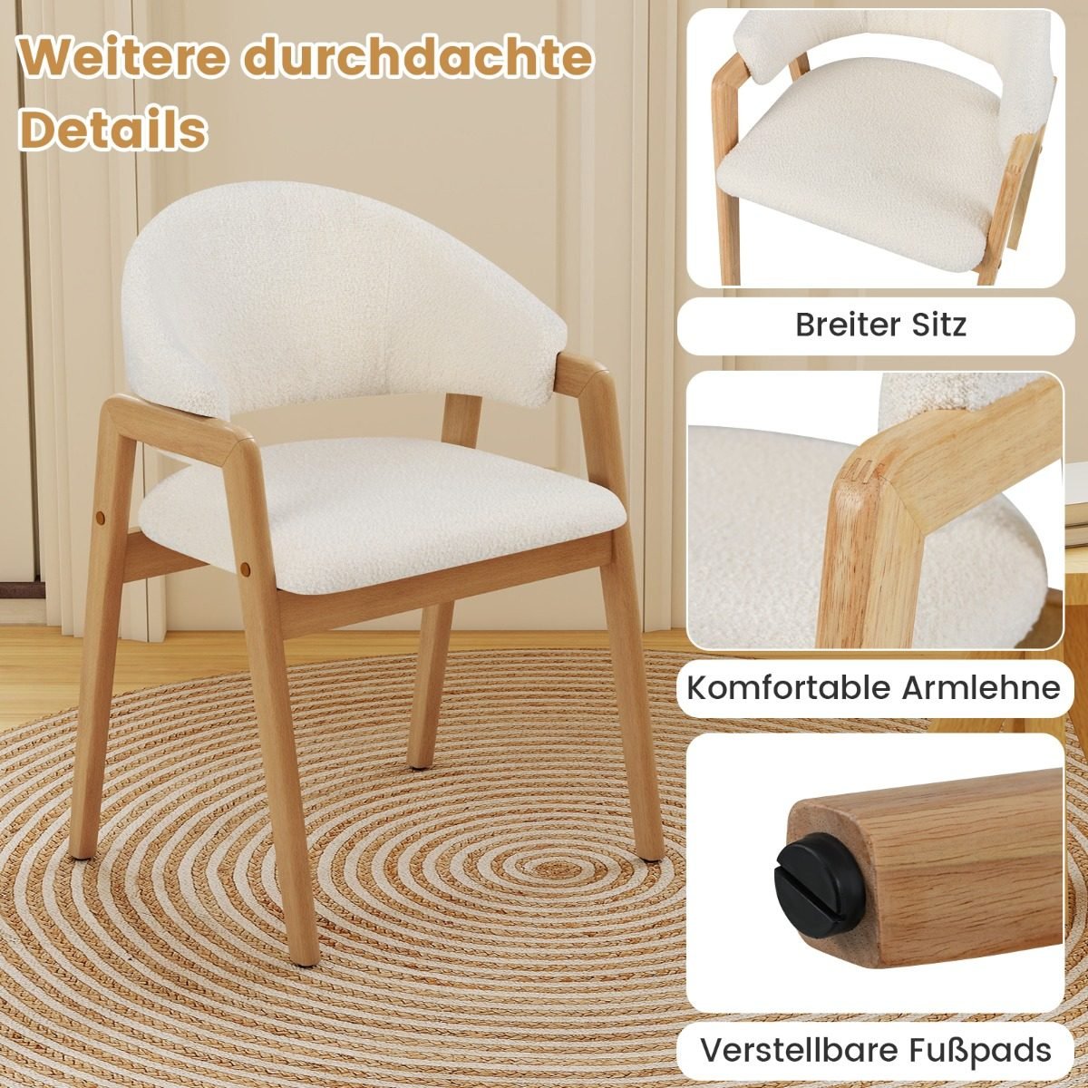 - Modernus dizainas su natūralaus medžio rėmu ir balta sėdimąja dalimi puikiai tiks bet kurioje erdvėje.